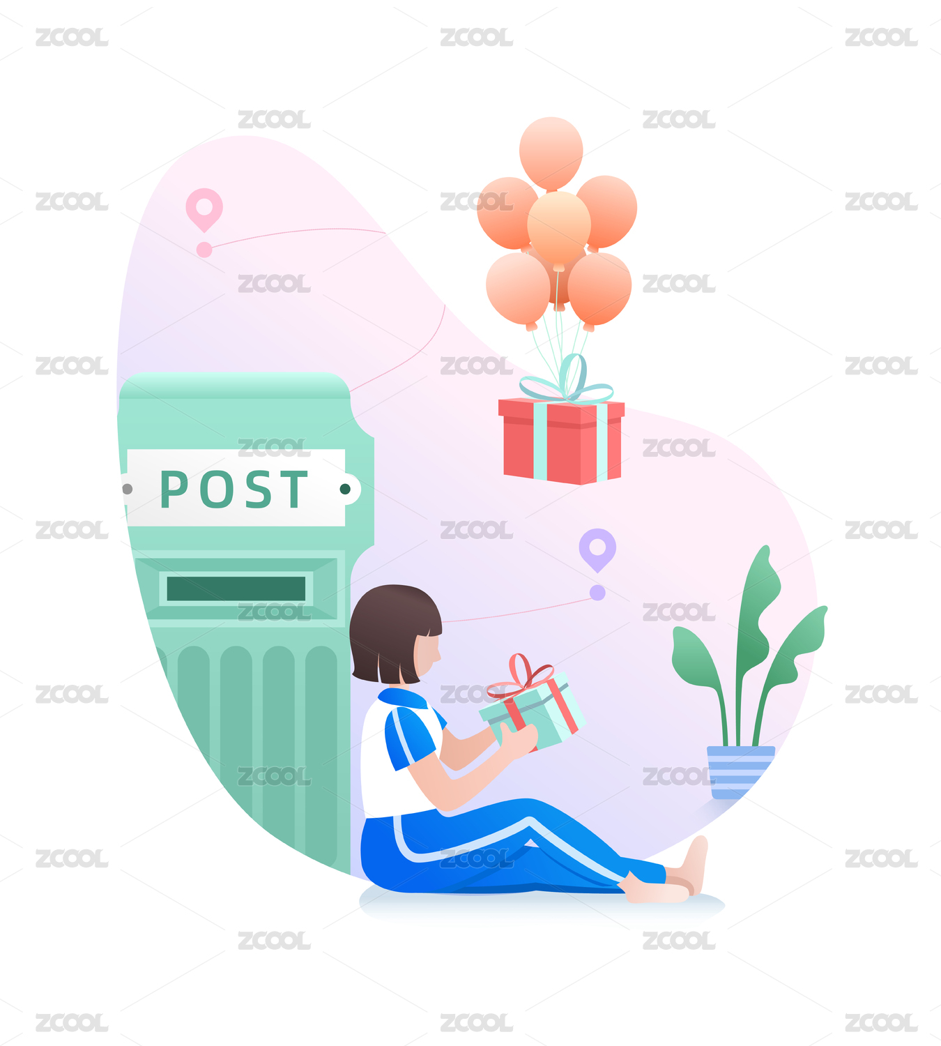 在線教育扁平插畫校服學(xué)生郵筒邊收禮物禮品