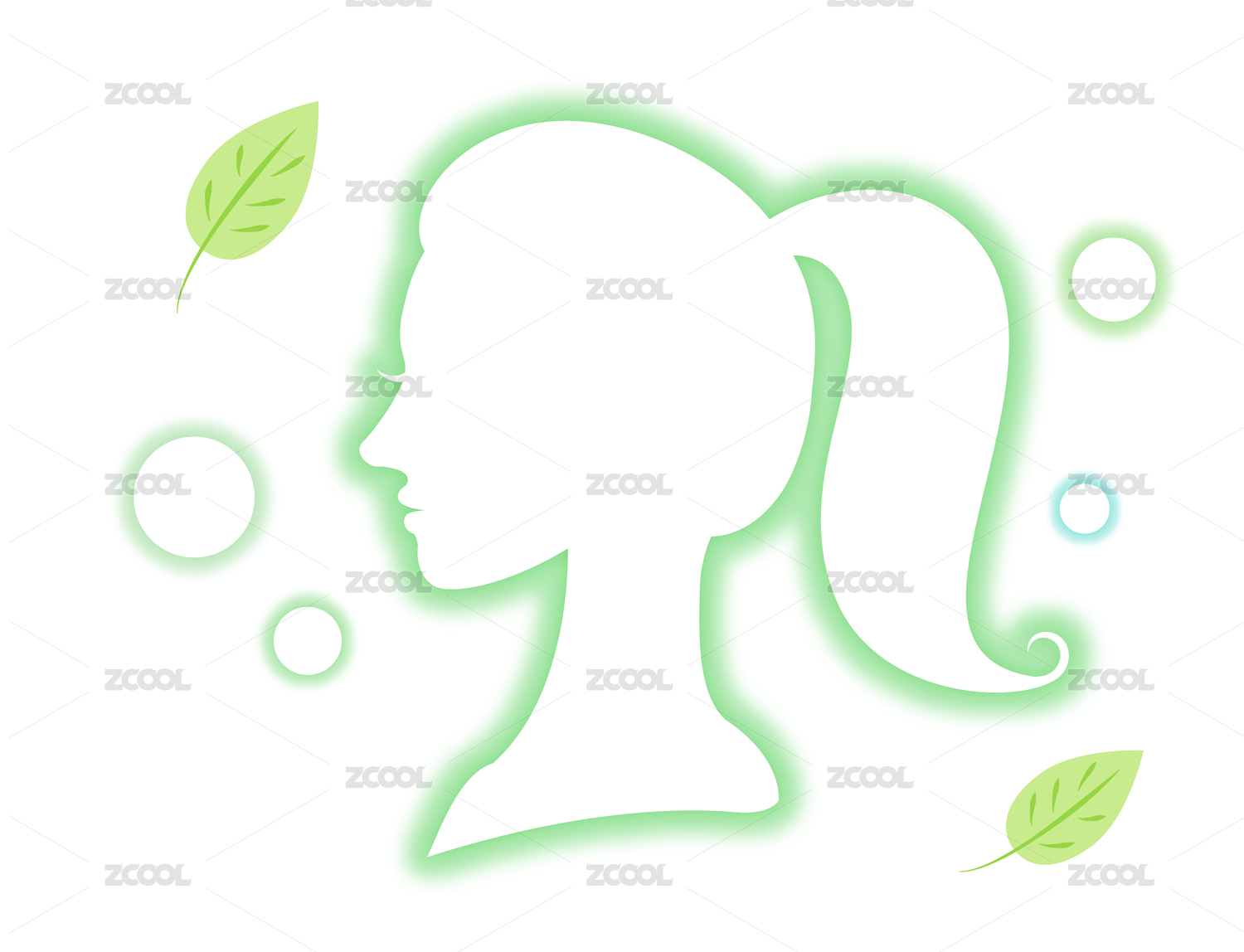 漂亮女生 頭像輪廓 投影頭像 帶葉子