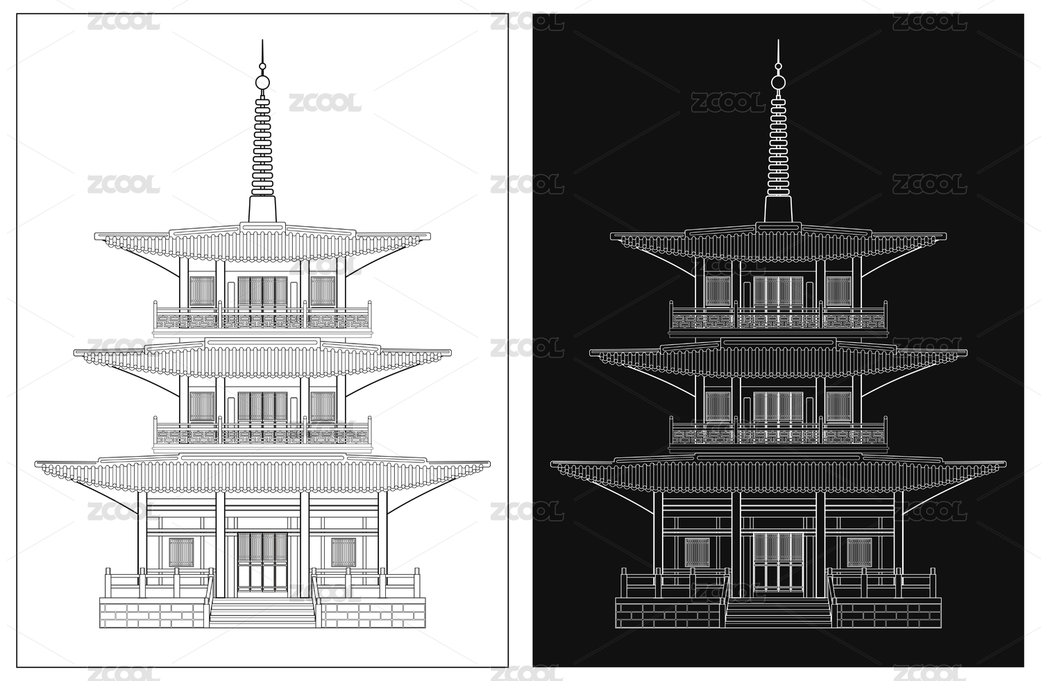日本傳統(tǒng)風(fēng)格寶塔輪廓插圖素材矢量圖