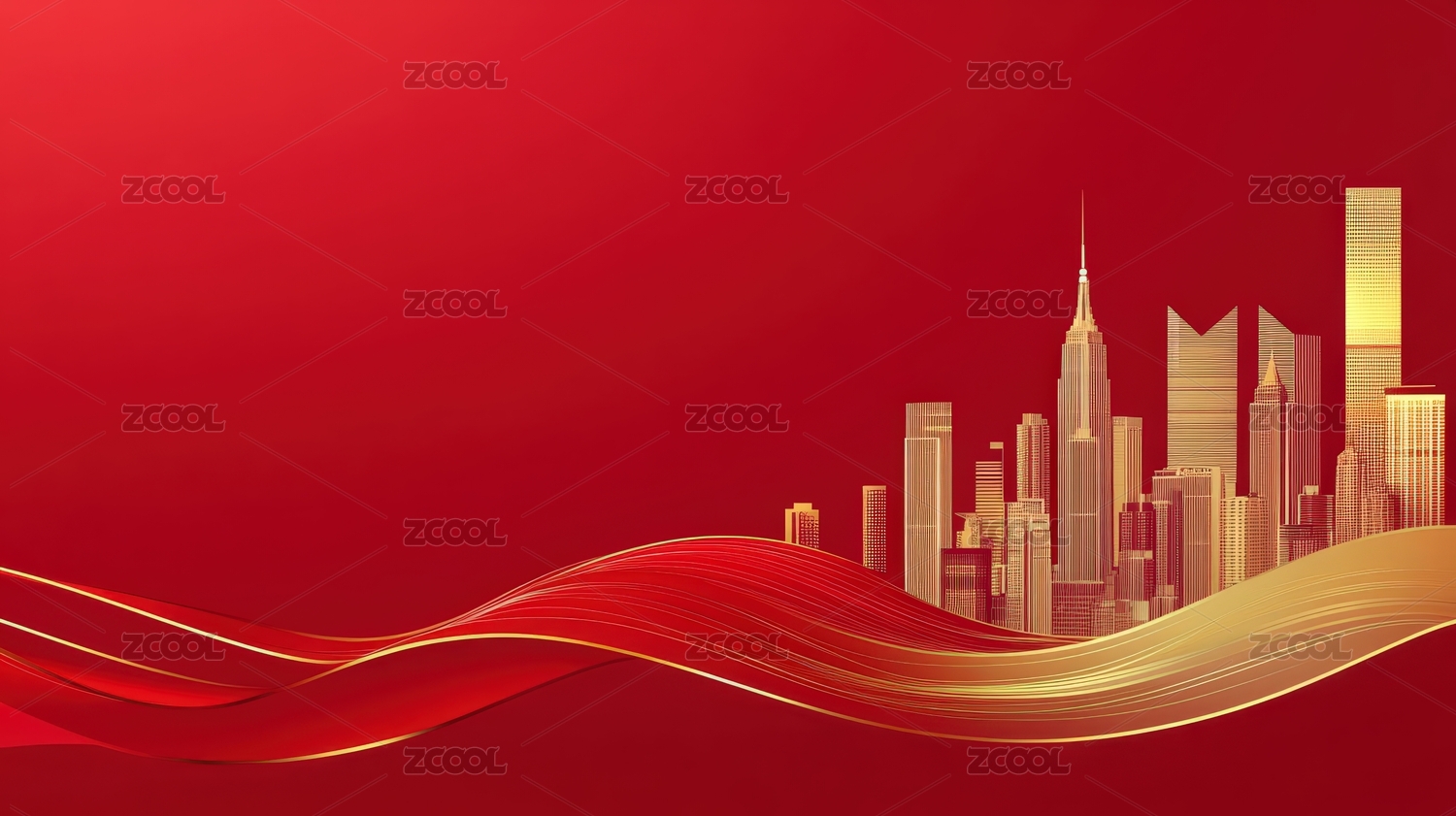 金色城市輪廓紅色背景