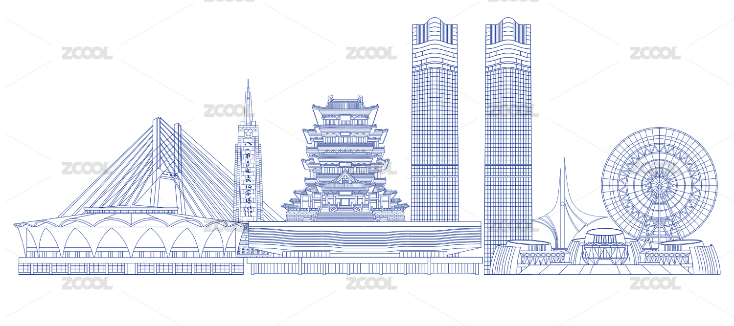 線條輪廓江西南昌地標(biāo)建筑