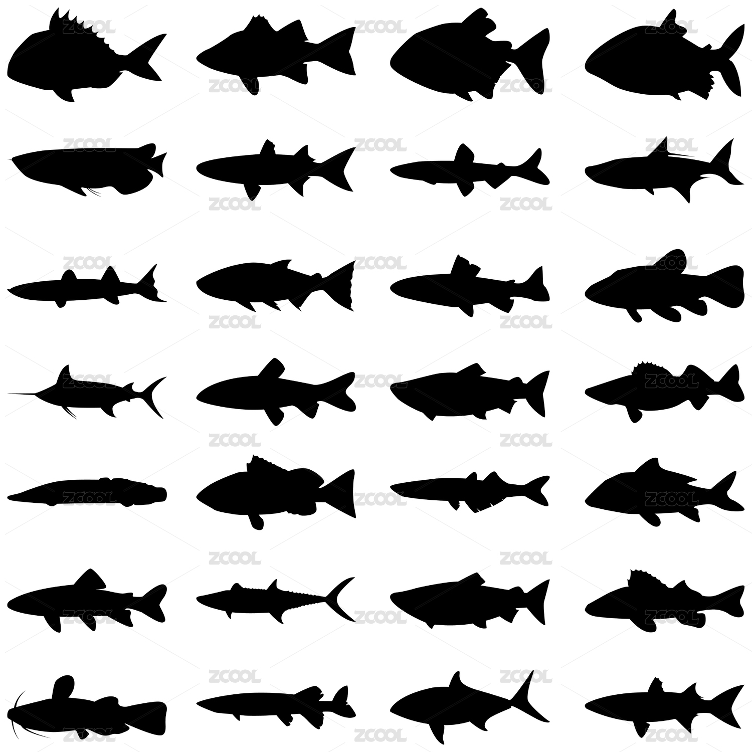 各種魚的輪廓插畫素材矢量圖