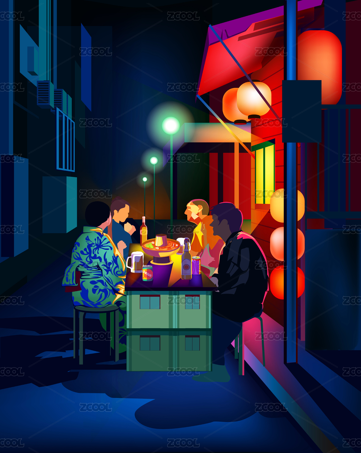 街頭夜宵光影輪廓氛圍
