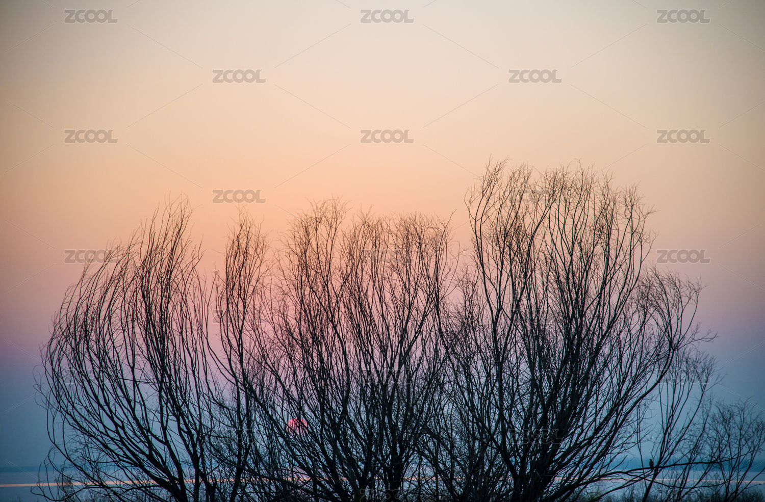 暮色中樹影的輪廓