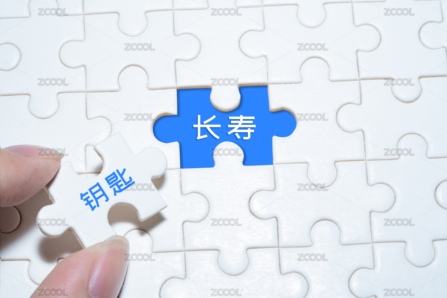 人手拿起拼塊拼圖貼圖揭露出長(zhǎng)壽健康的秘訣鑰匙秘密方法辦法醫(yī)療保健概念