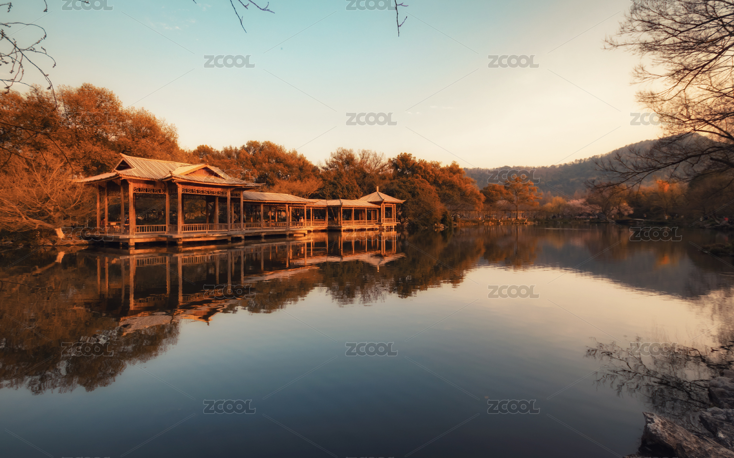 木質(zhì)閣樓與蔥郁綠樹(shù)景致