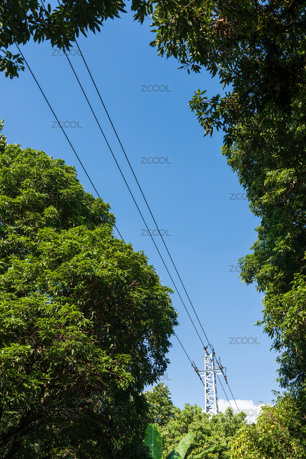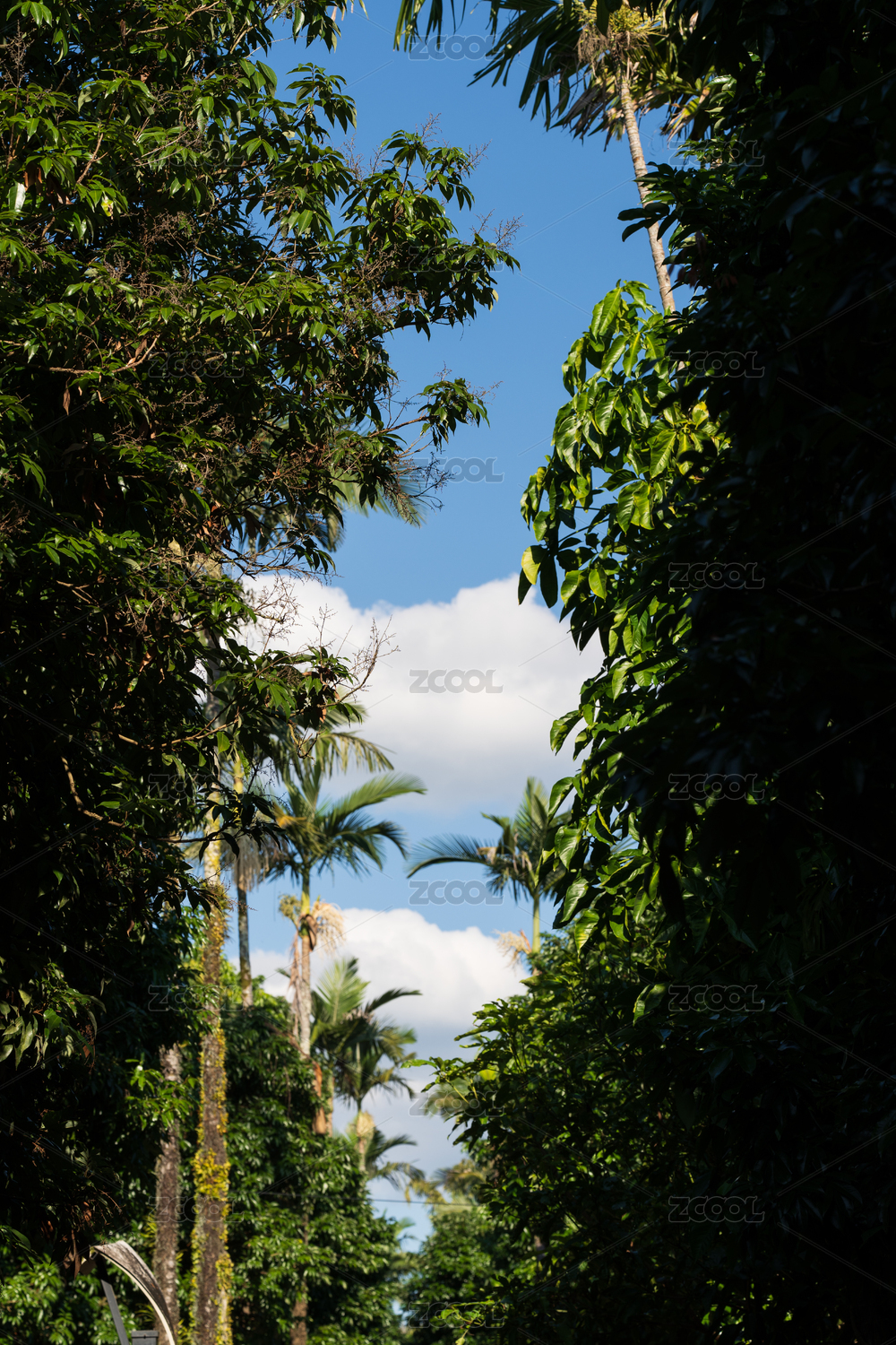 林間藍(lán)天與蔥郁樹(shù)木景致