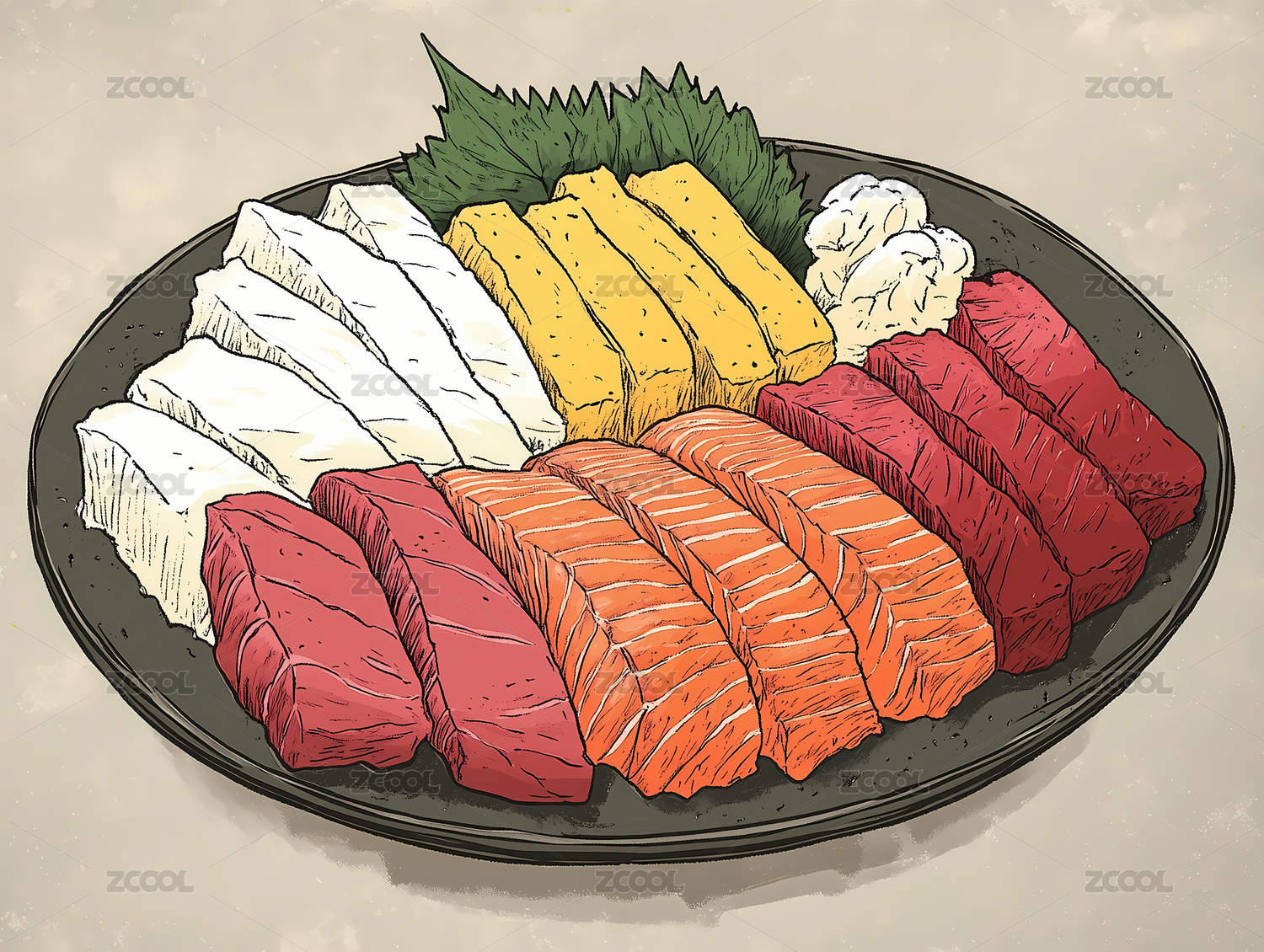 日式浮世繪風(fēng)格 食物生魚(yú)片壽司