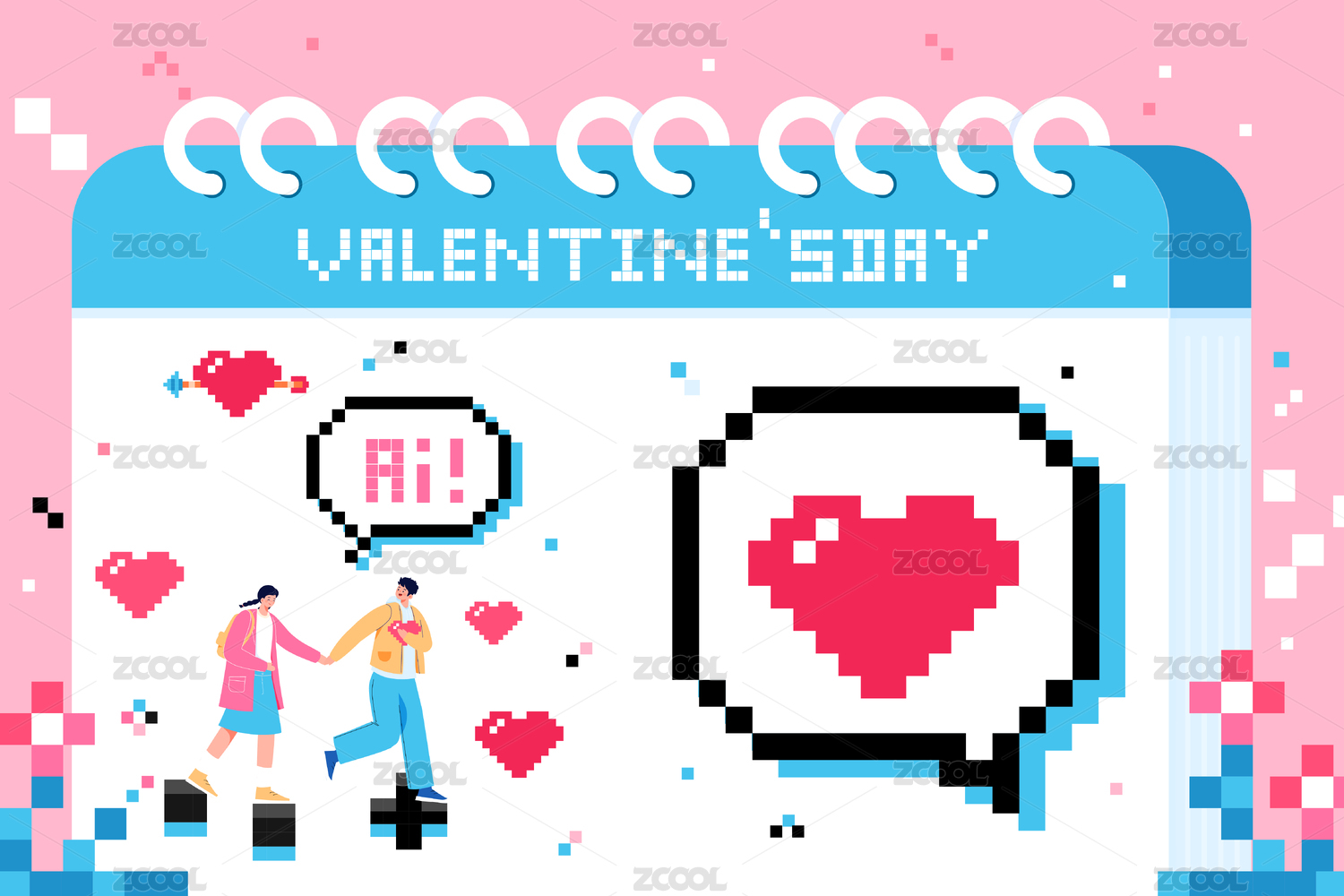 情人節(jié)情侶像素風(fēng)矢量插畫