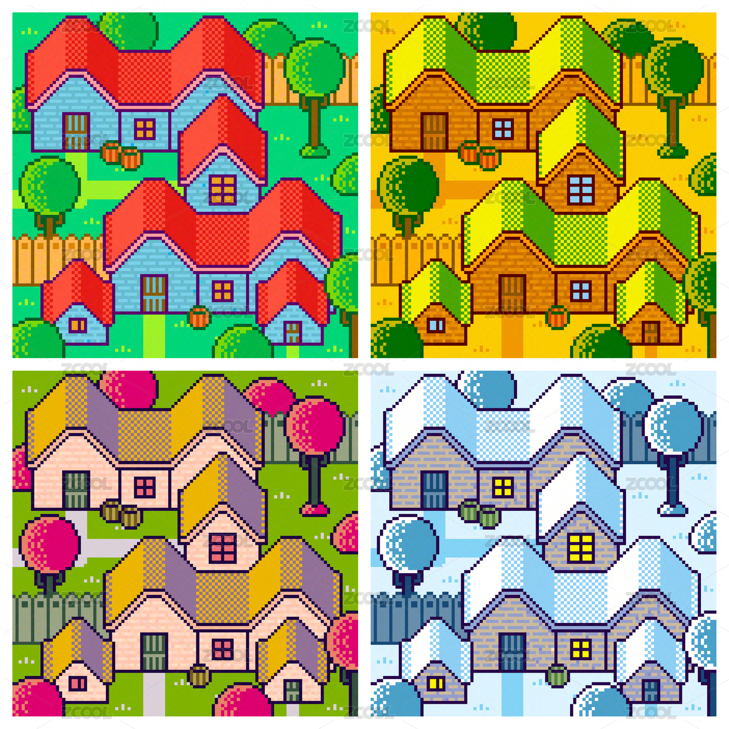 像素風(fēng)格村莊四季組圖