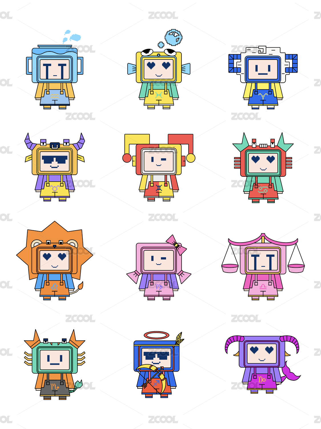 可愛(ài)卡通像素風(fēng)方頭十二星座