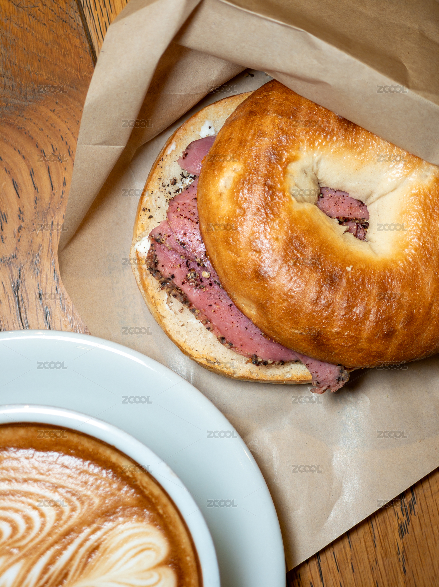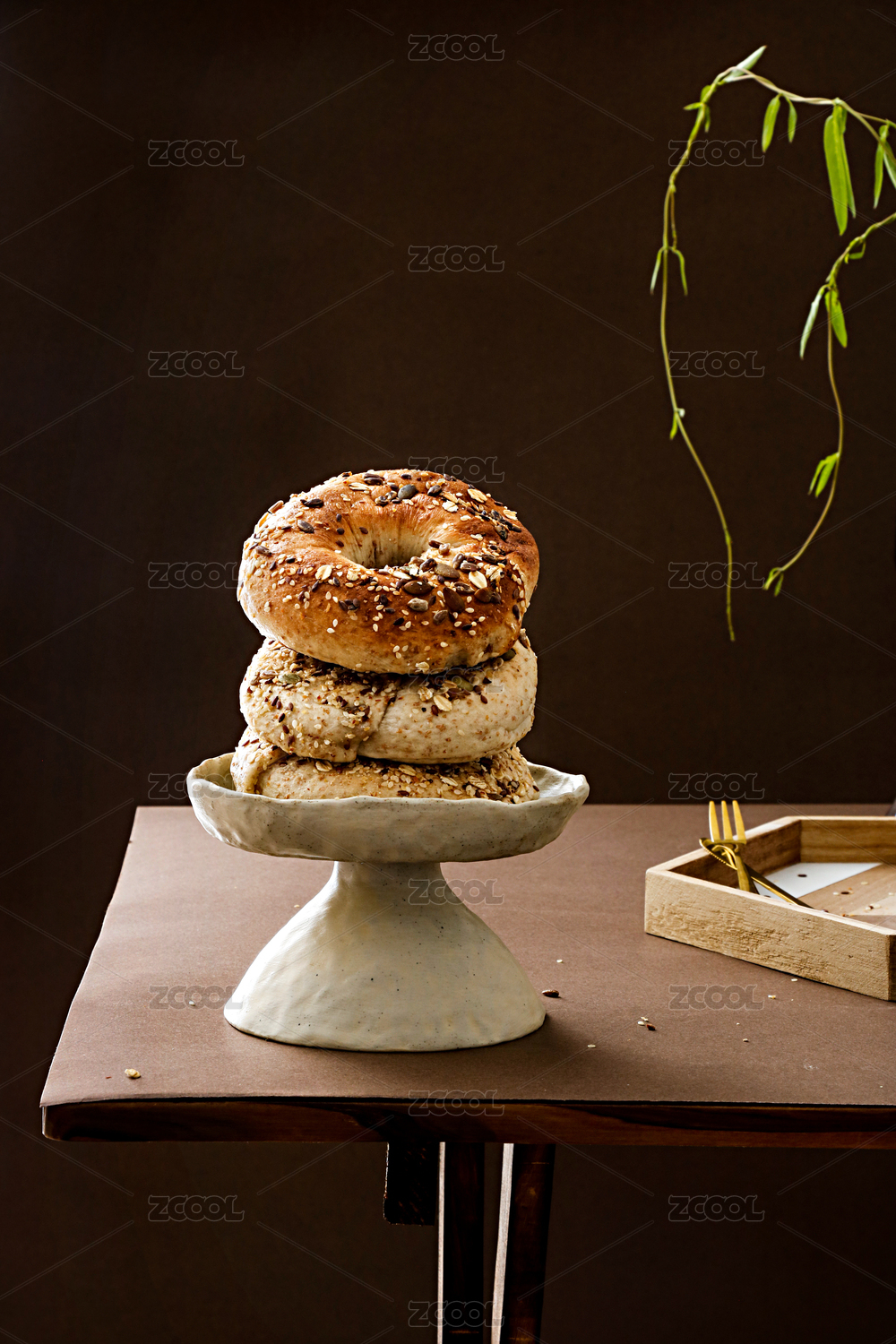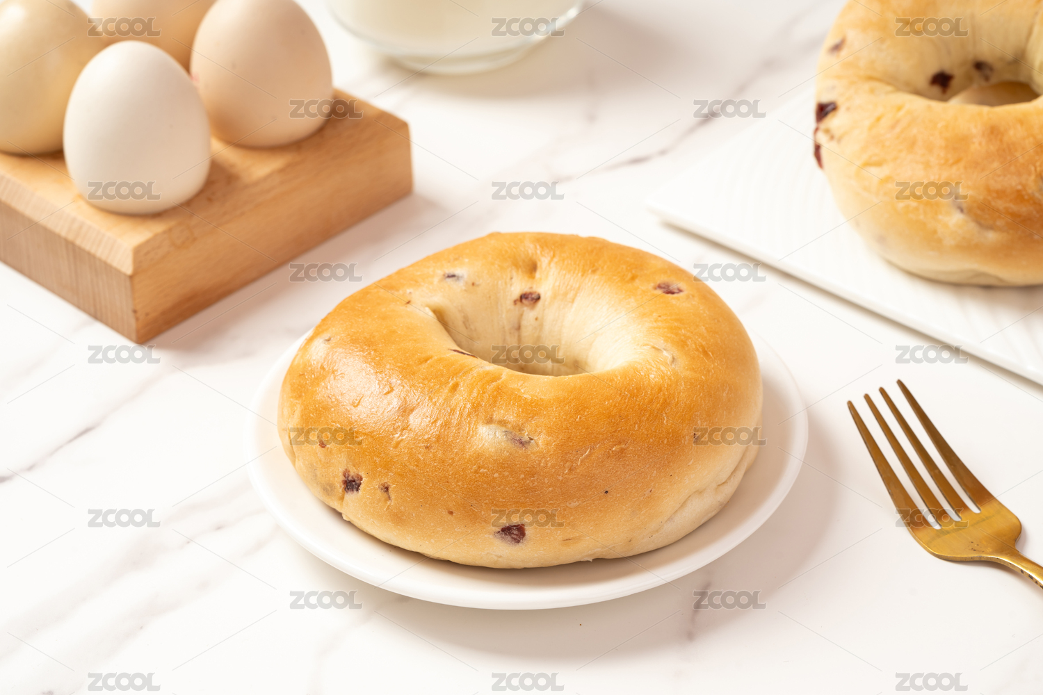 桌面盤(pán)子中的營(yíng)養(yǎng)健康早餐美食貝果三明治