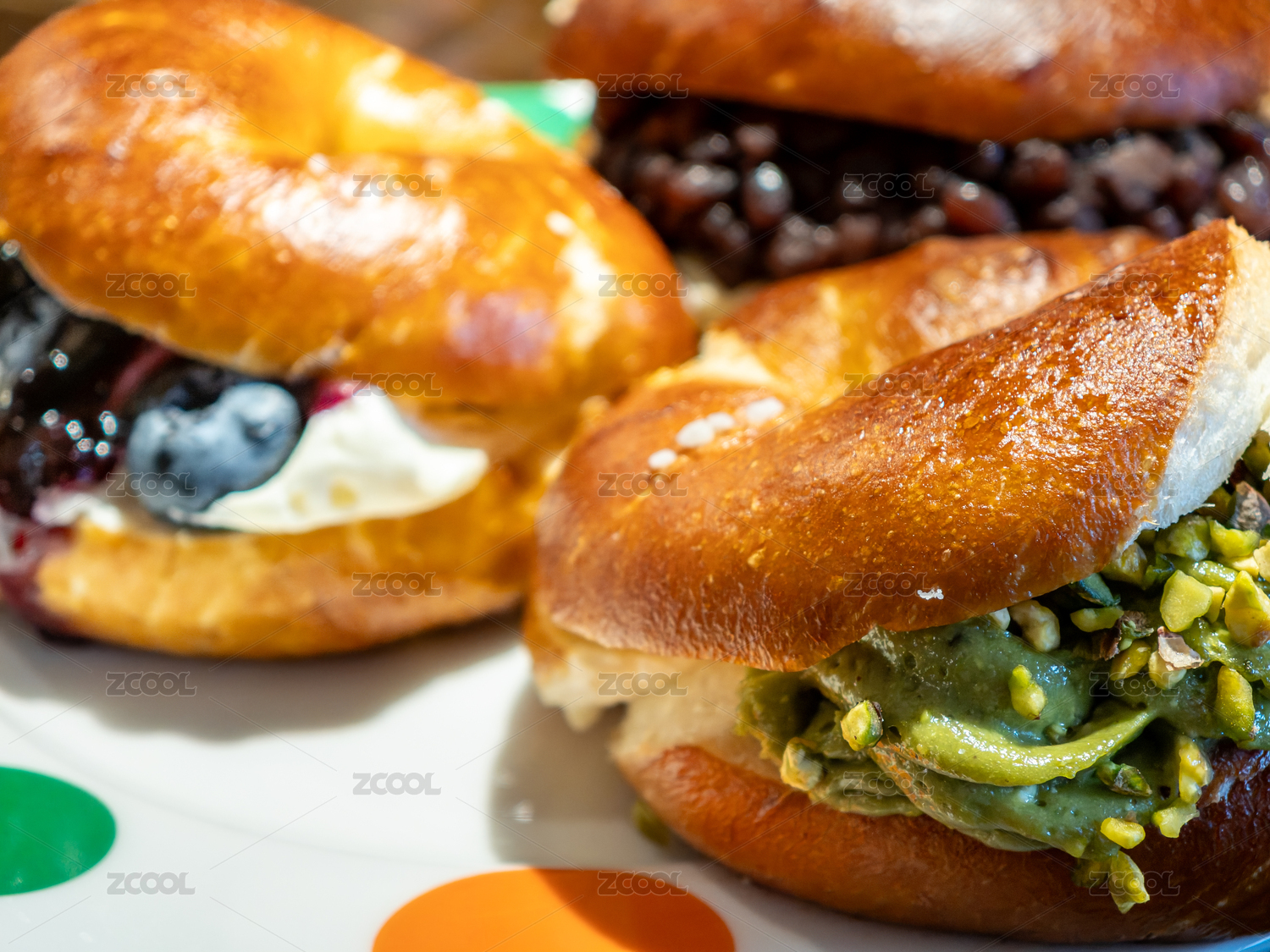 開(kāi)心果奶油餡料和碎堅(jiān)果的貝果