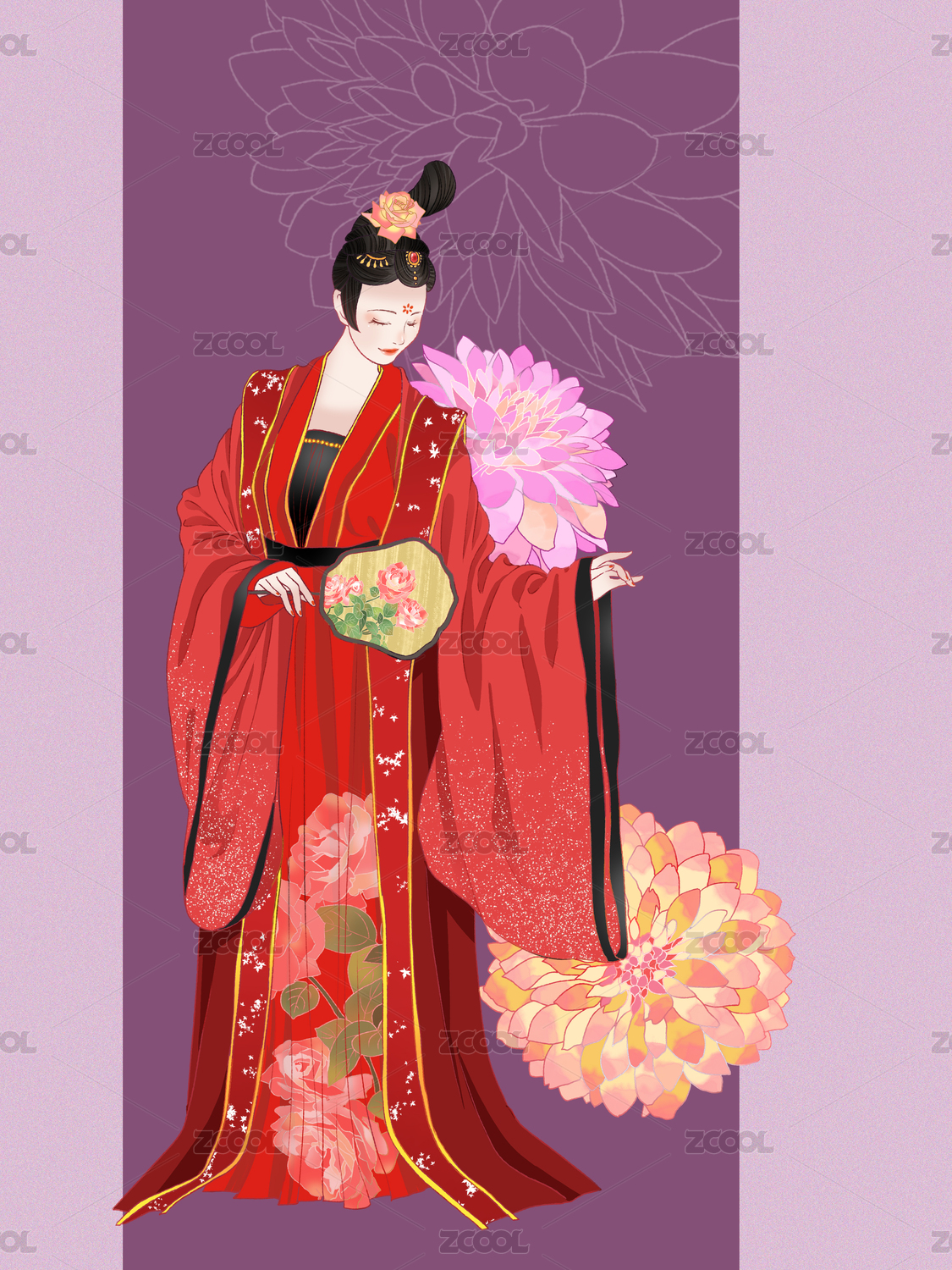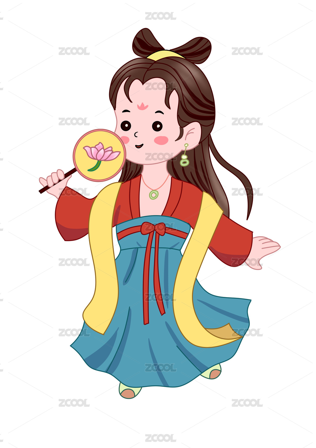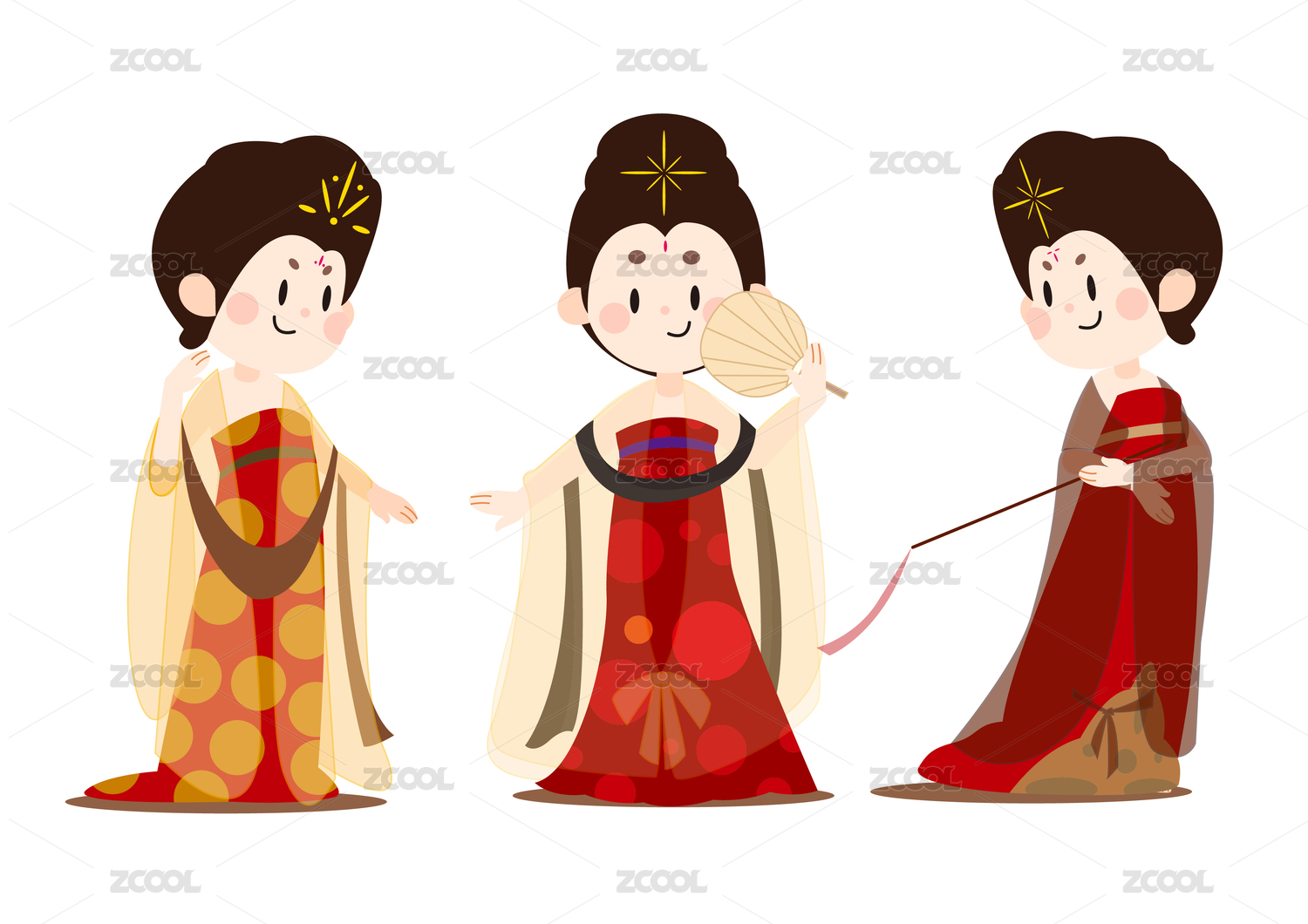 矢量可愛唐代仕女宮女貴婦服飾發(fā)型國潮插畫