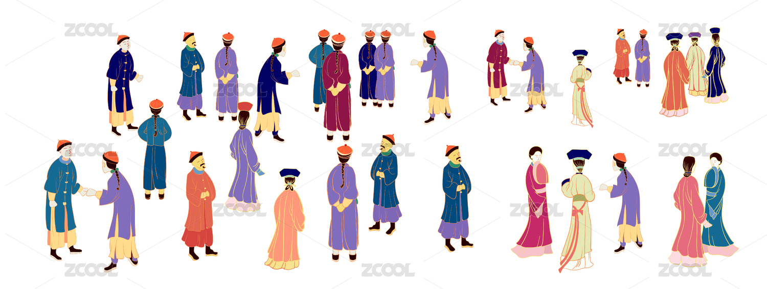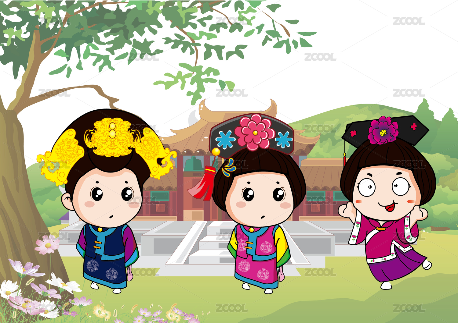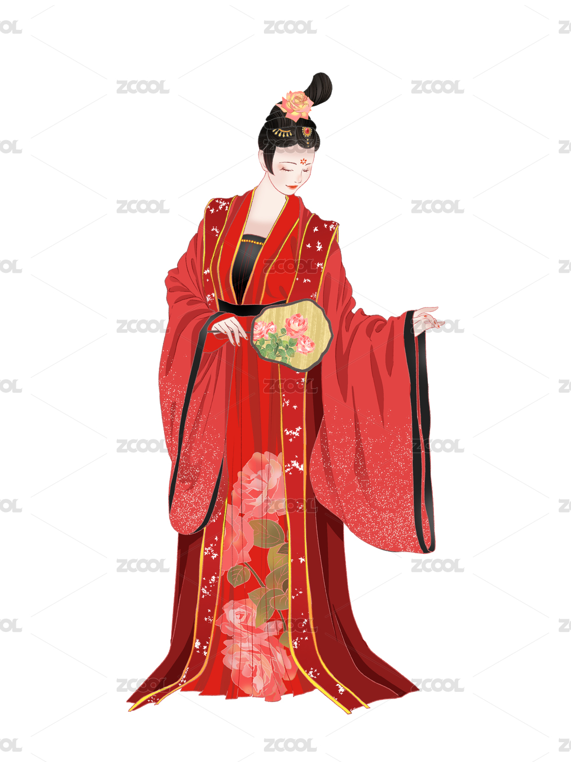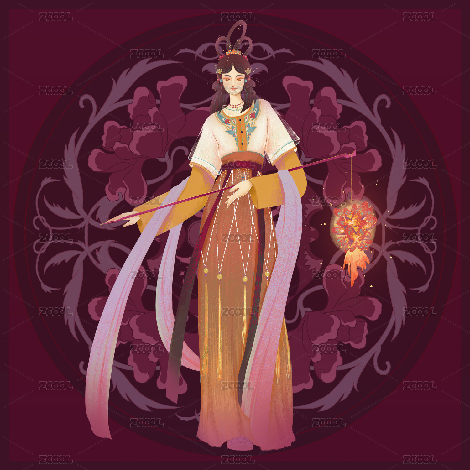 矢量可愛唐代仕女宮女貴婦服飾發(fā)型國潮插畫