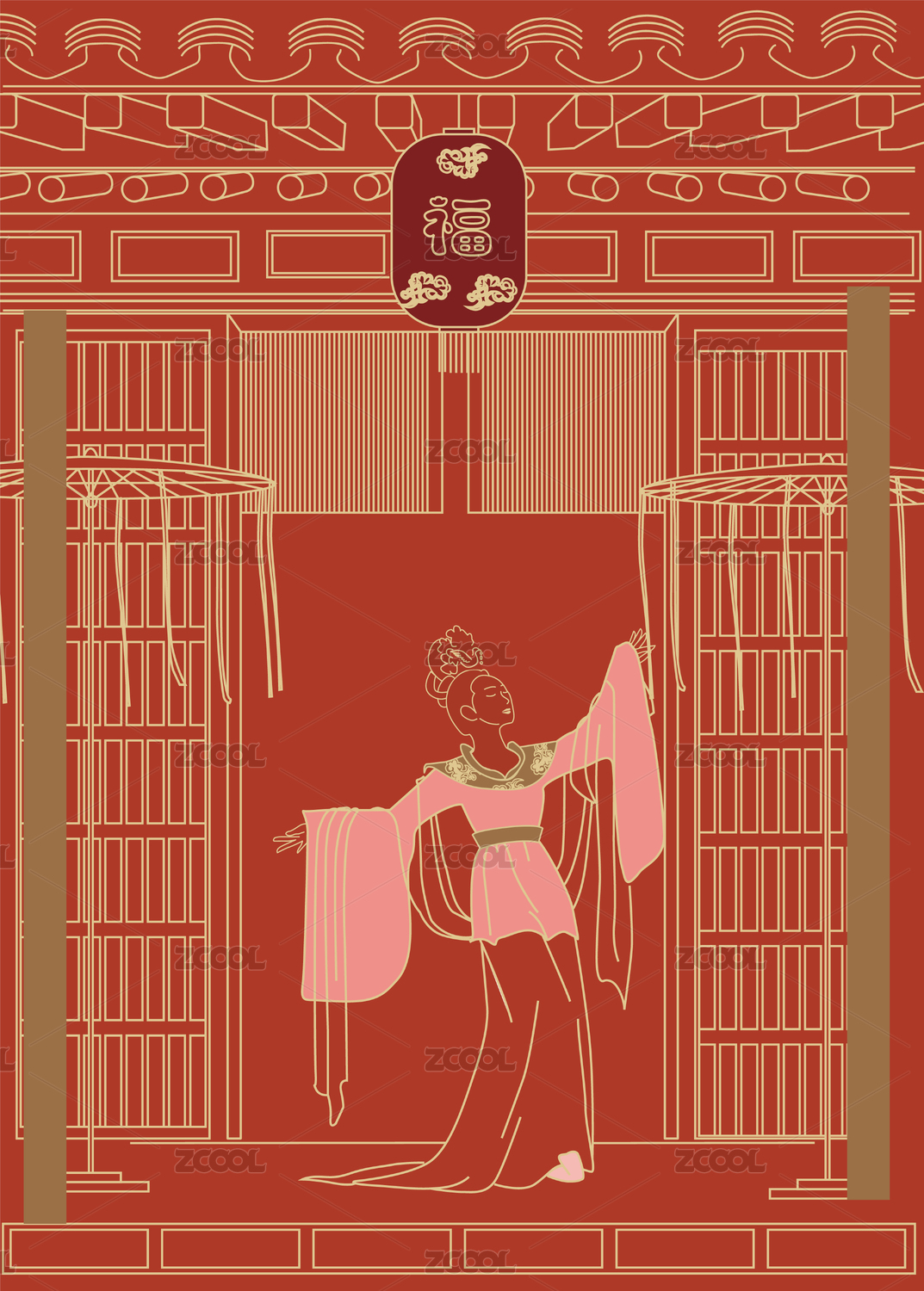 宮女在中國傳統(tǒng)風(fēng)格皇宮里彈琵琶
