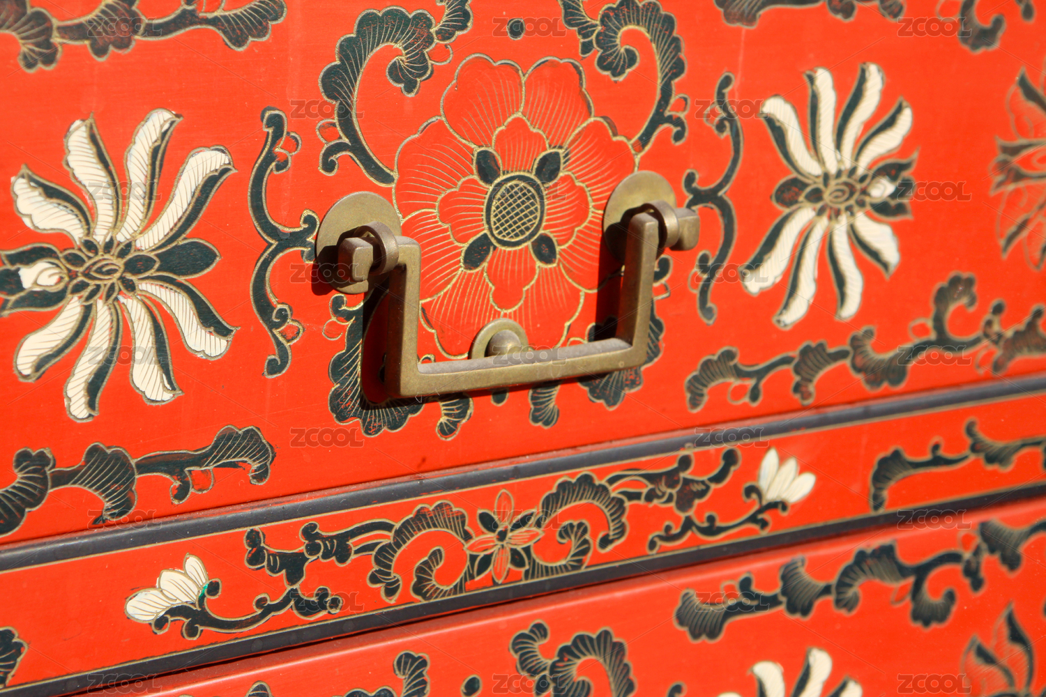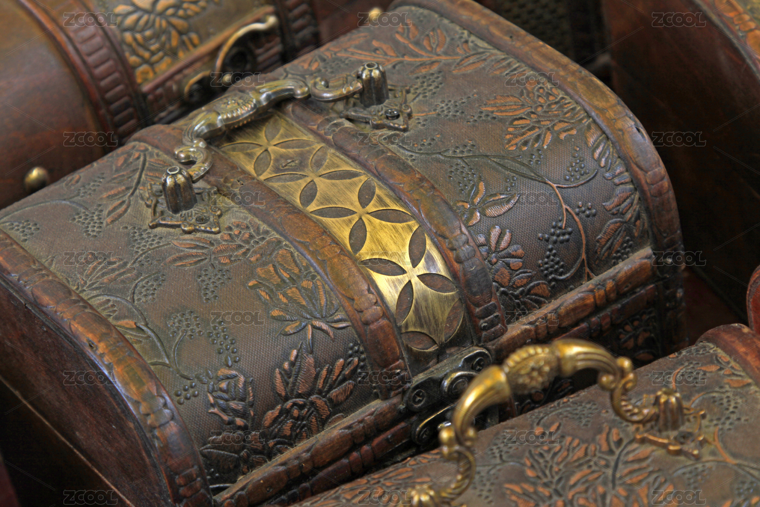 雕花木箱上的金色拉手
