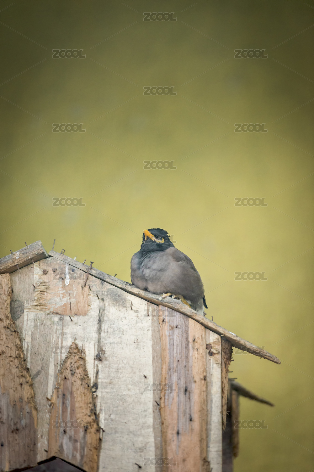 動(dòng)物園中木箱子上一只慵懶的小鳥