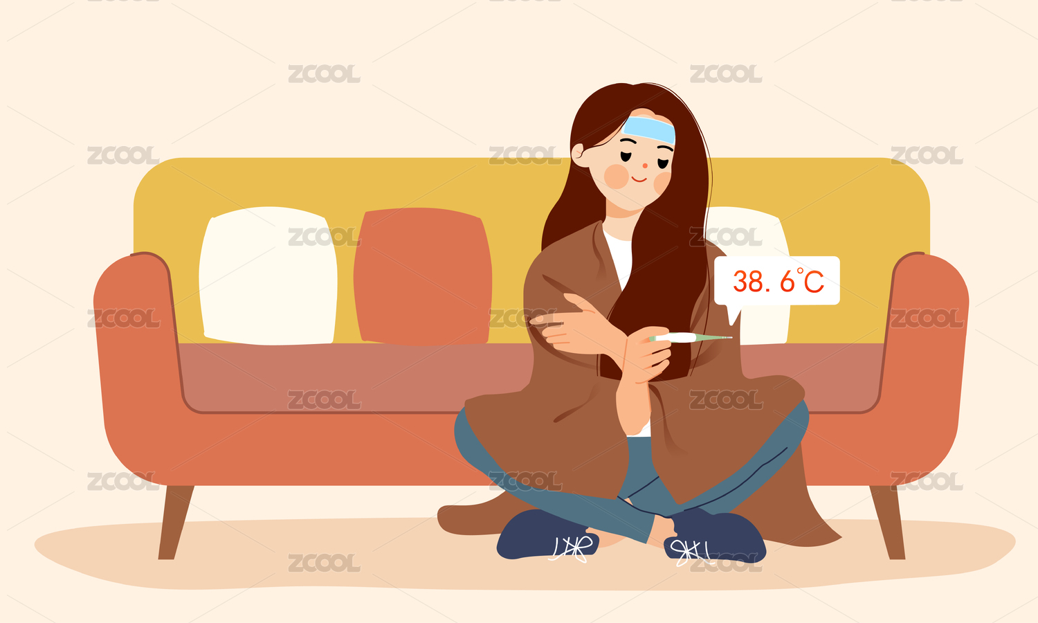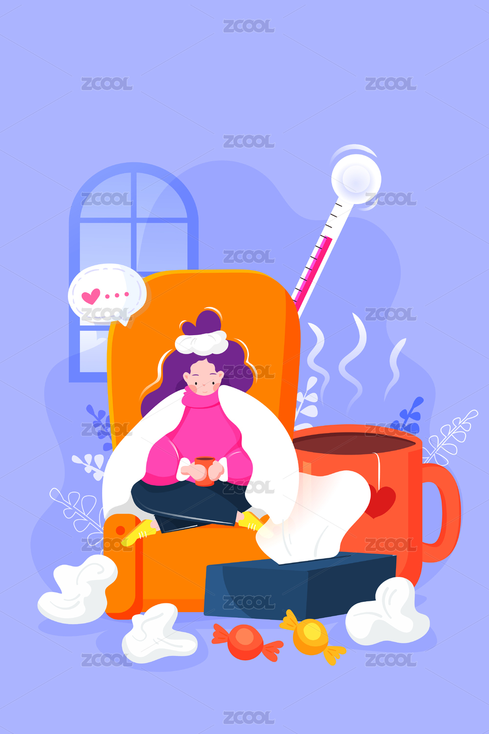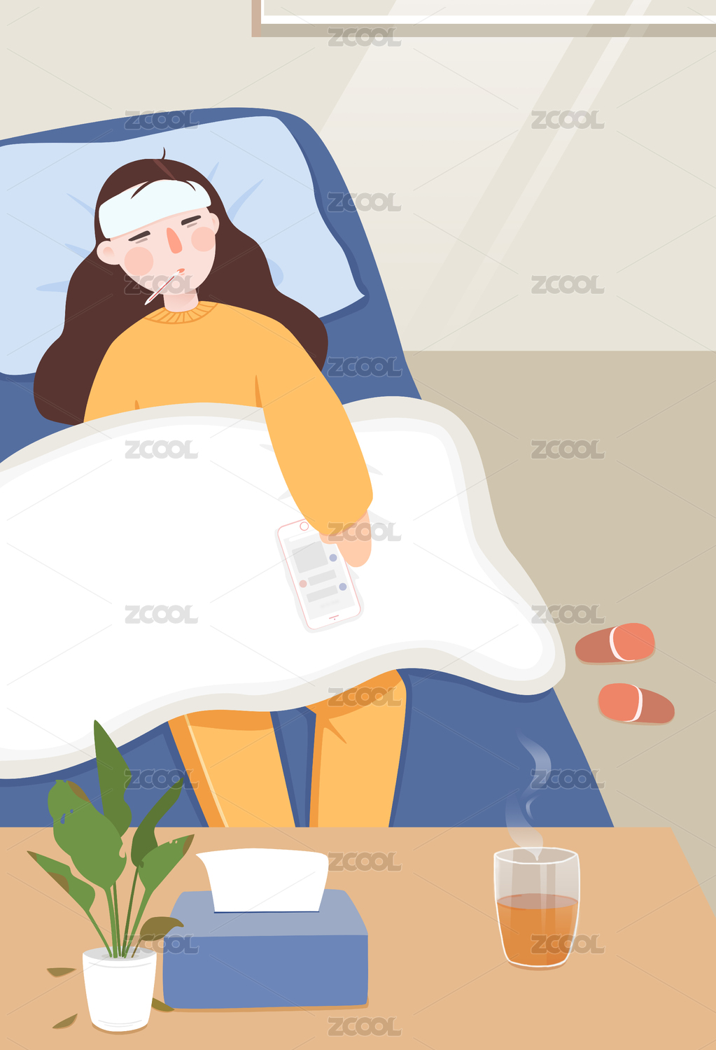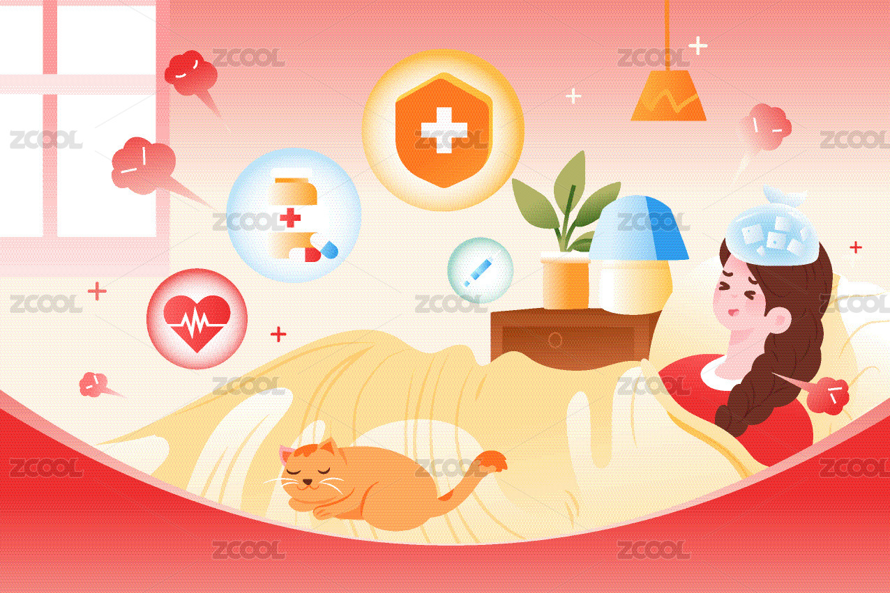生病感冒發(fā)燒女生插畫