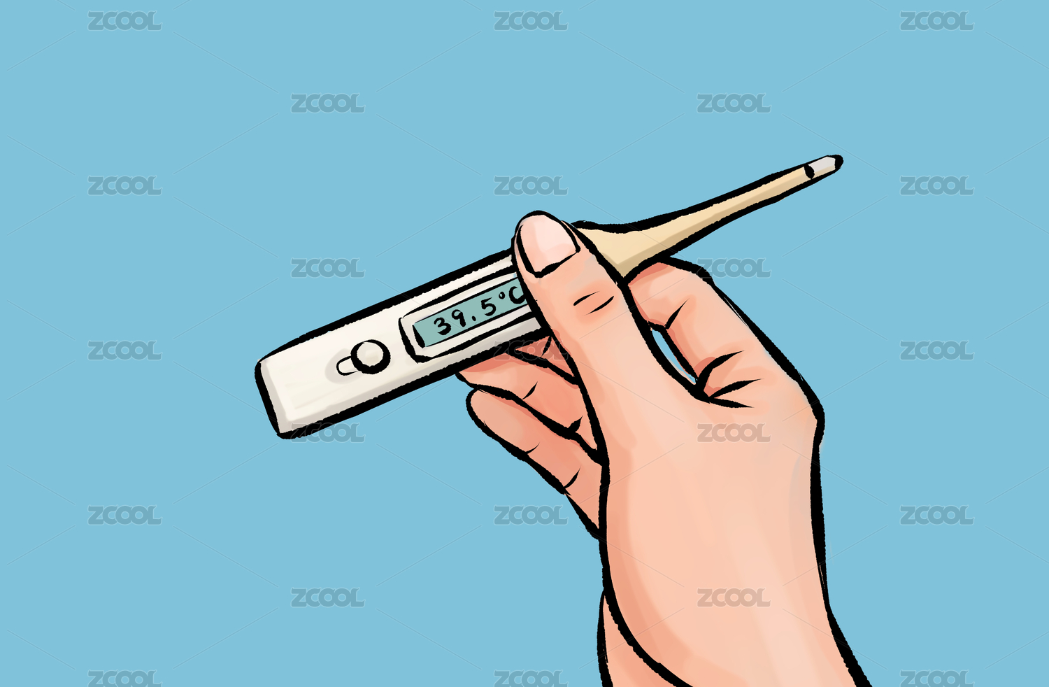 發(fā)燒手拿溫度計(jì)插畫
