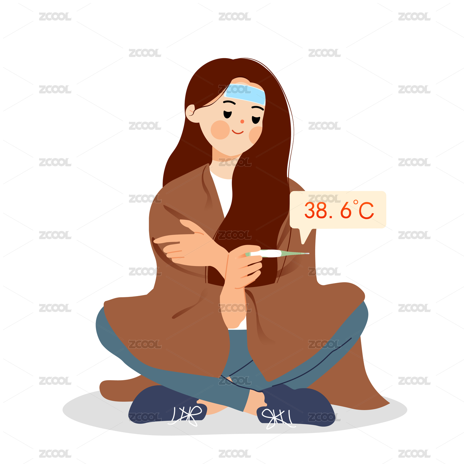 感冒發(fā)燒怕冷的人插畫