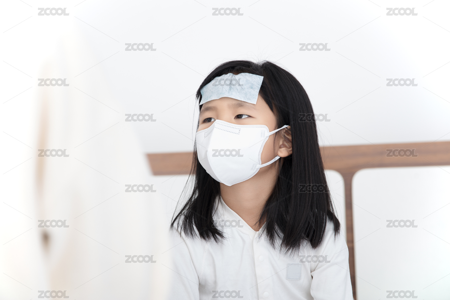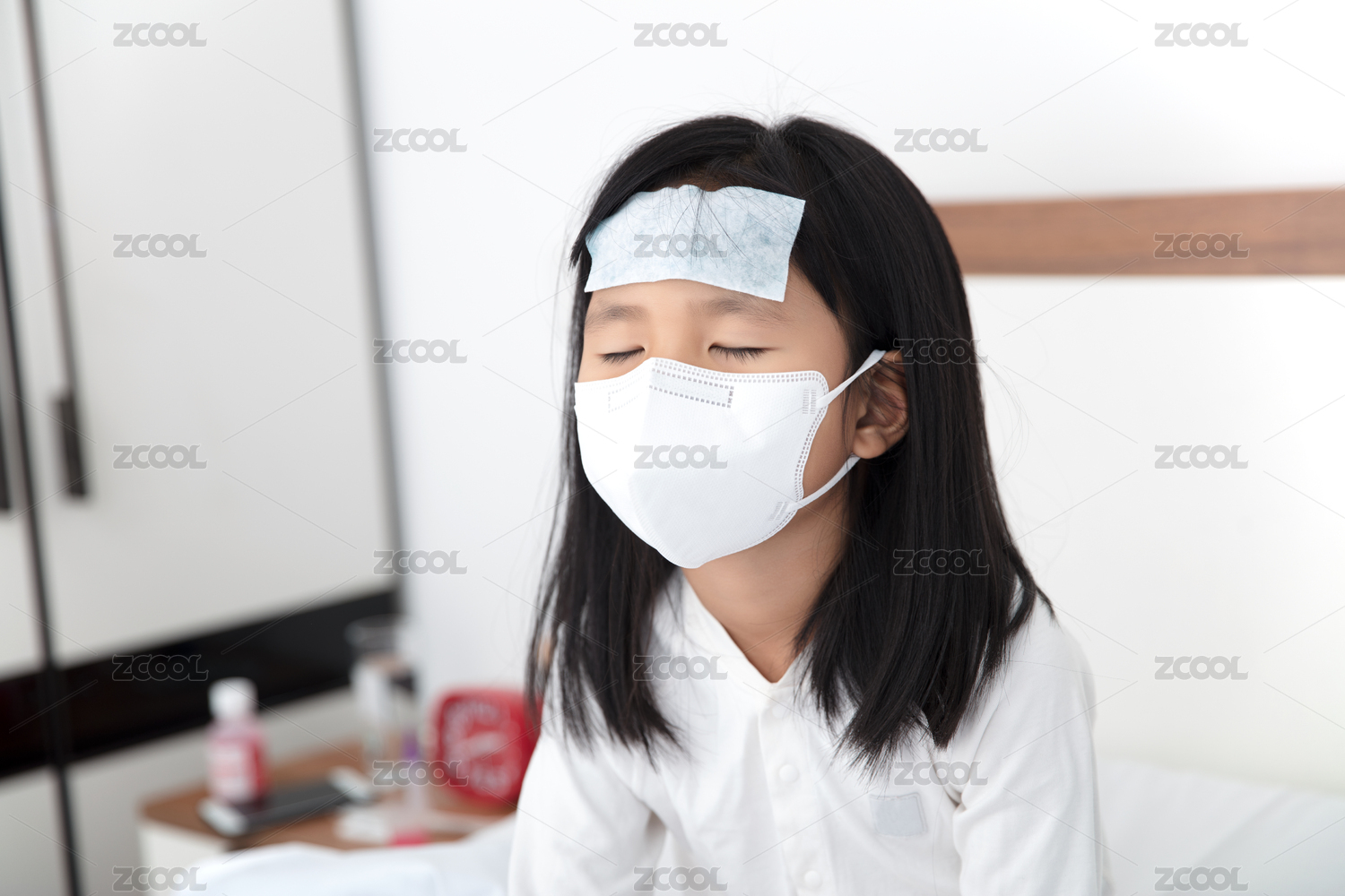 發(fā)燒不舒服的小姑娘坐在床上