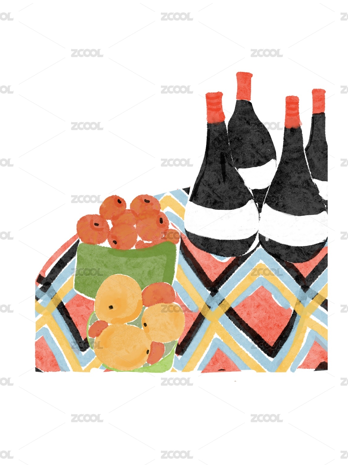 享受生活靜物紅酒水果桌子多彩水彩聚會(huì)