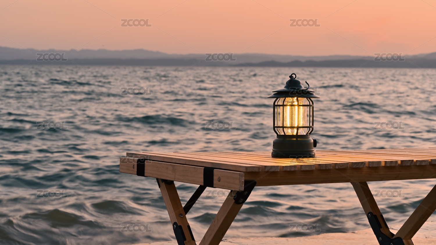 露營(yíng) 日落海邊的桌子椅子