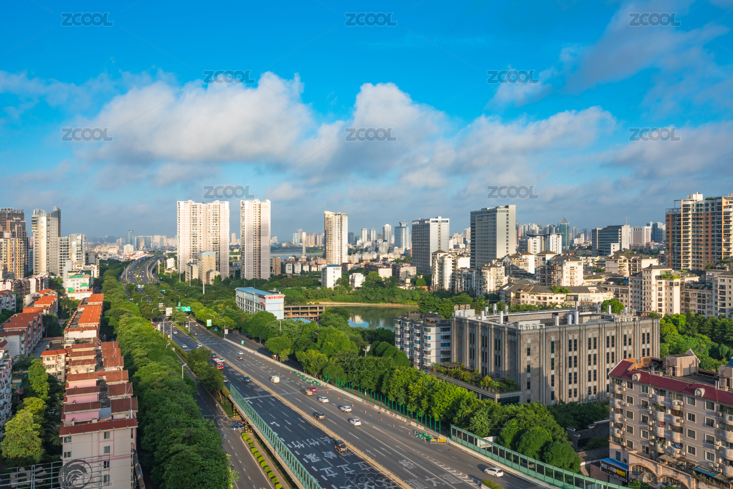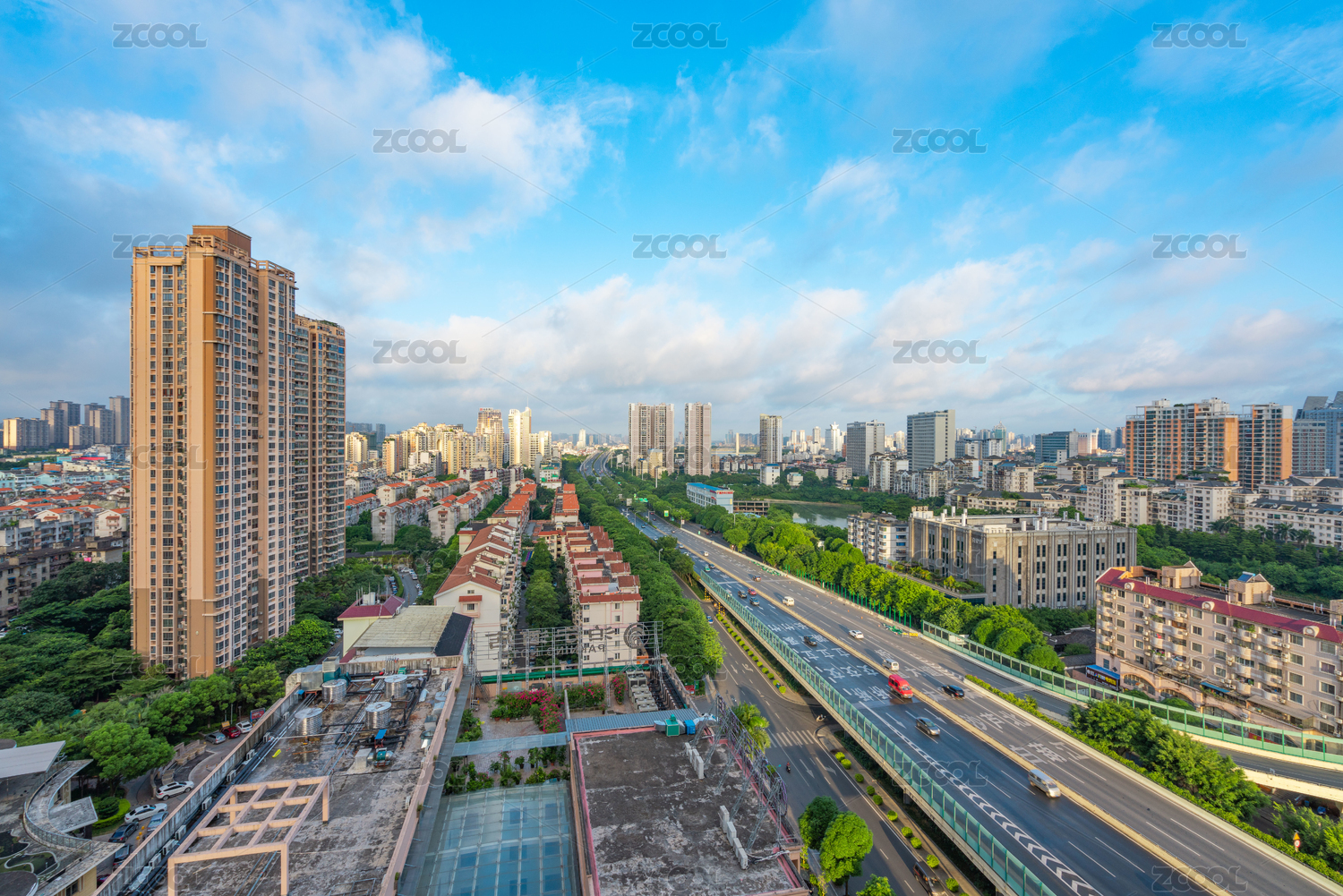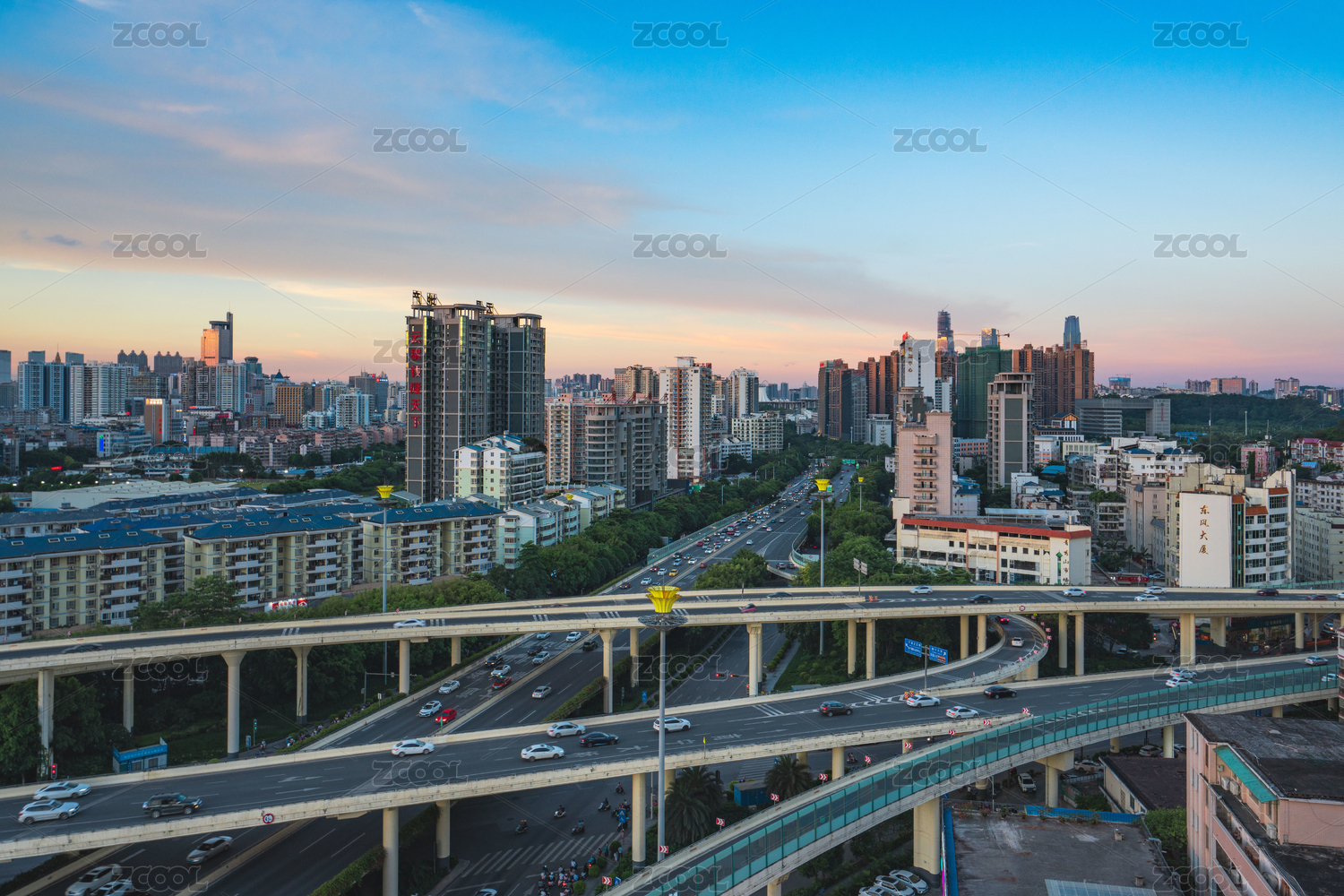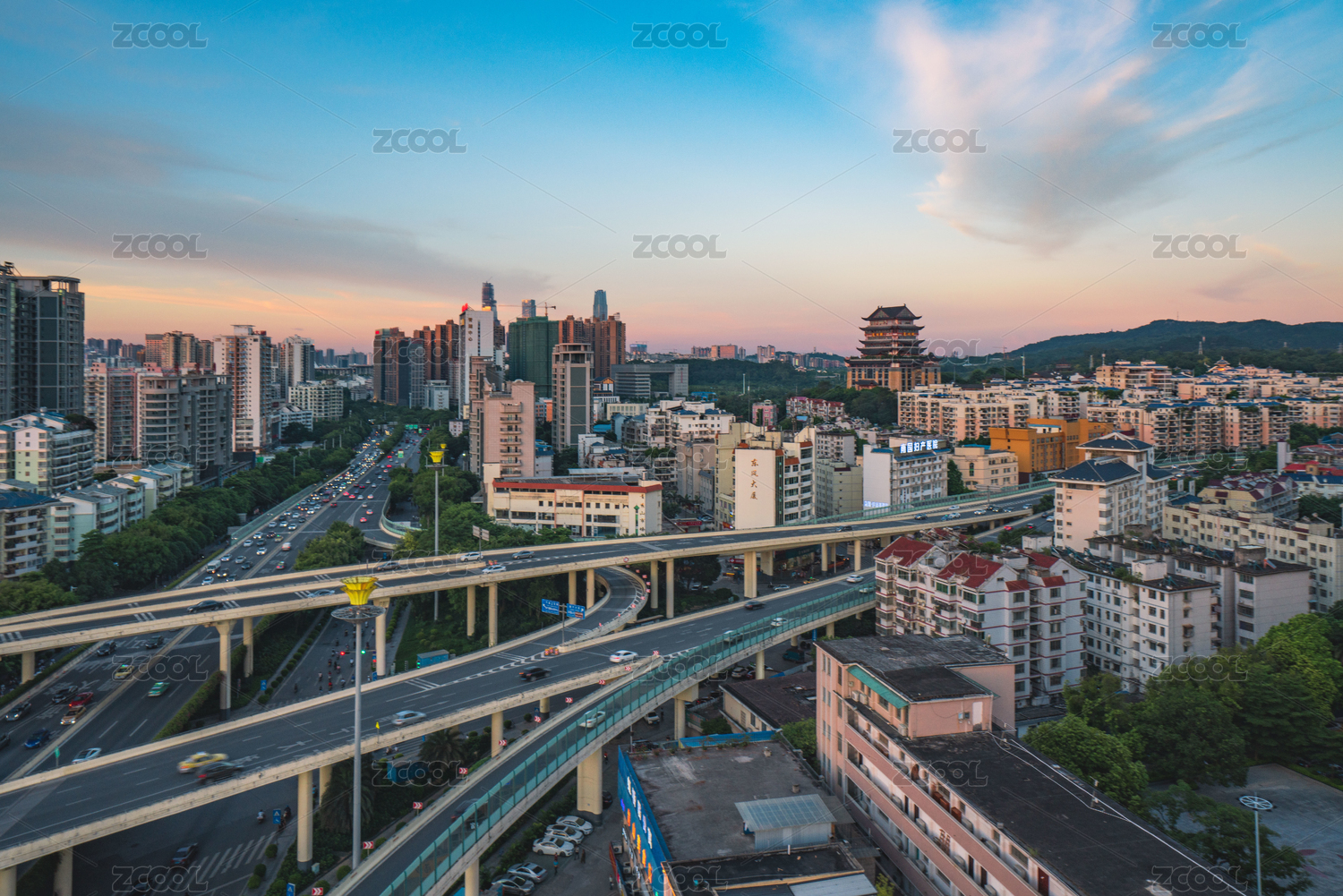 廣西南寧城市天際線,日出時(shí)分青竹立交與邕州