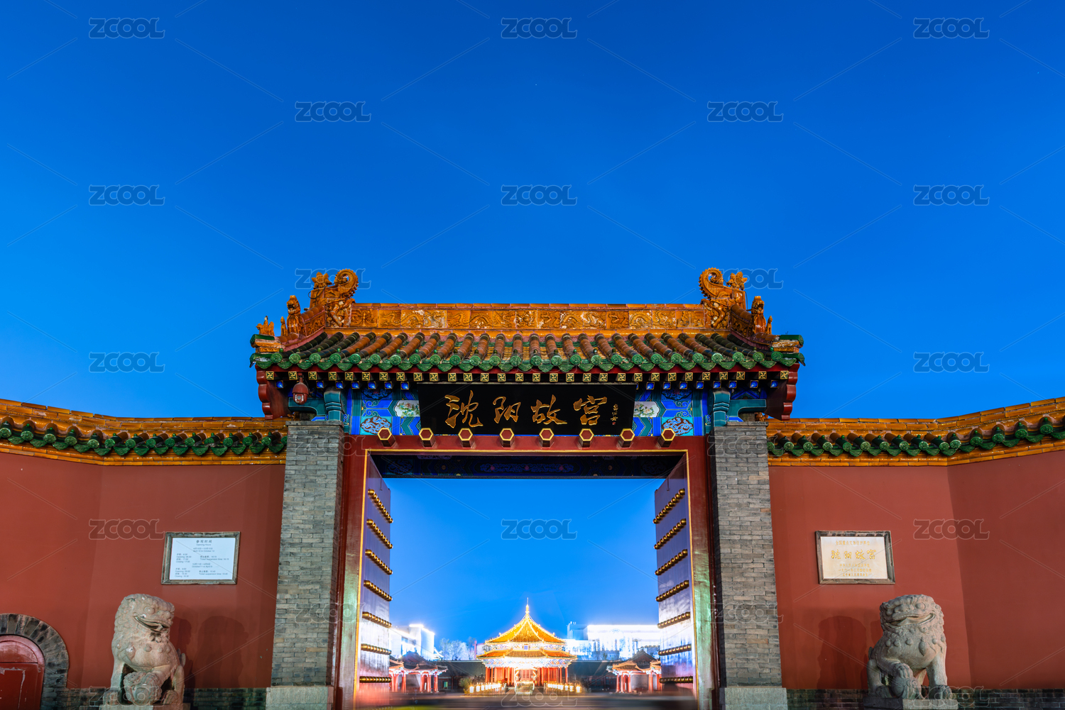 中國遼寧沈陽故宮正門東大門大政殿夜景