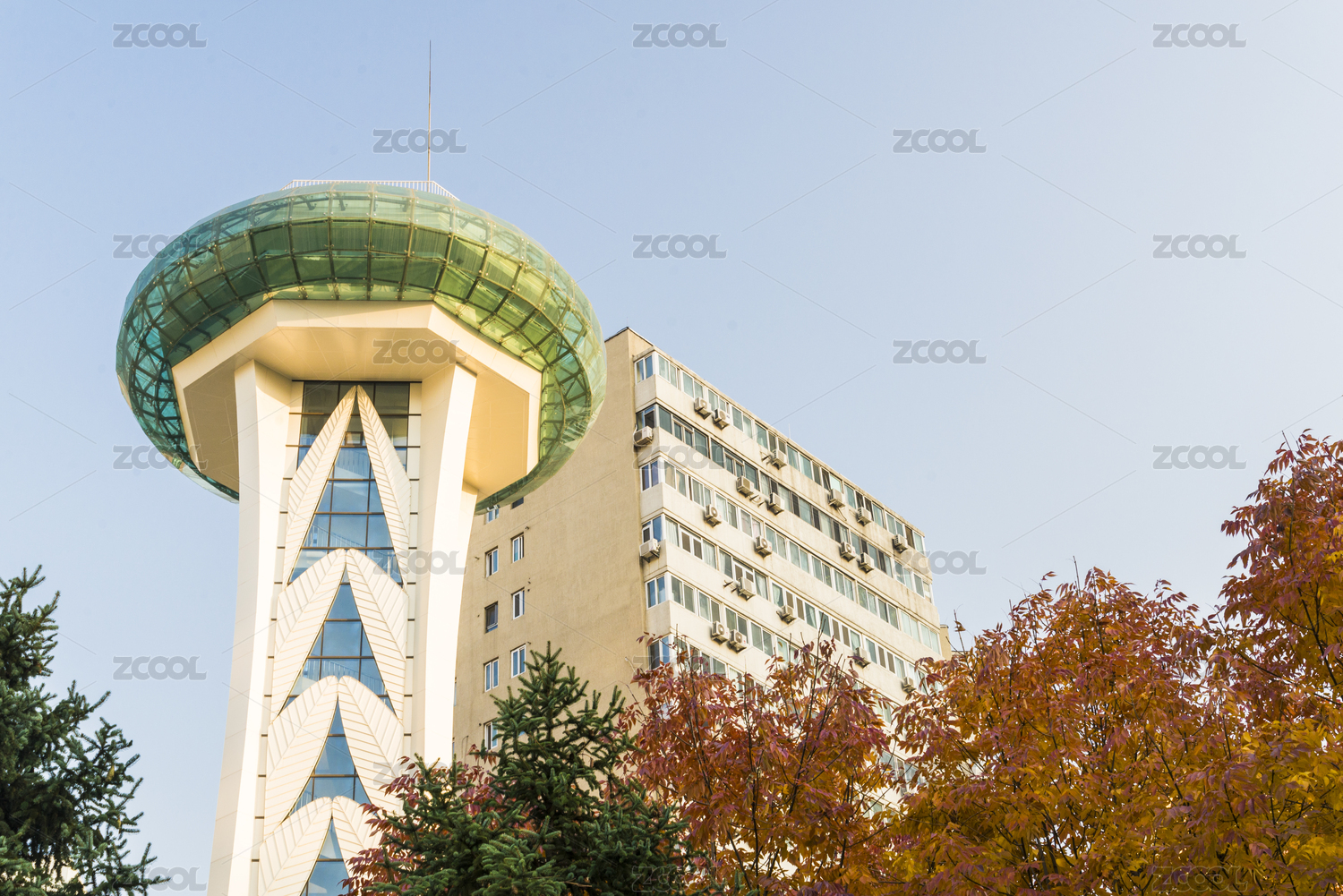 秋天晴空下的北京都市現(xiàn)代建筑
