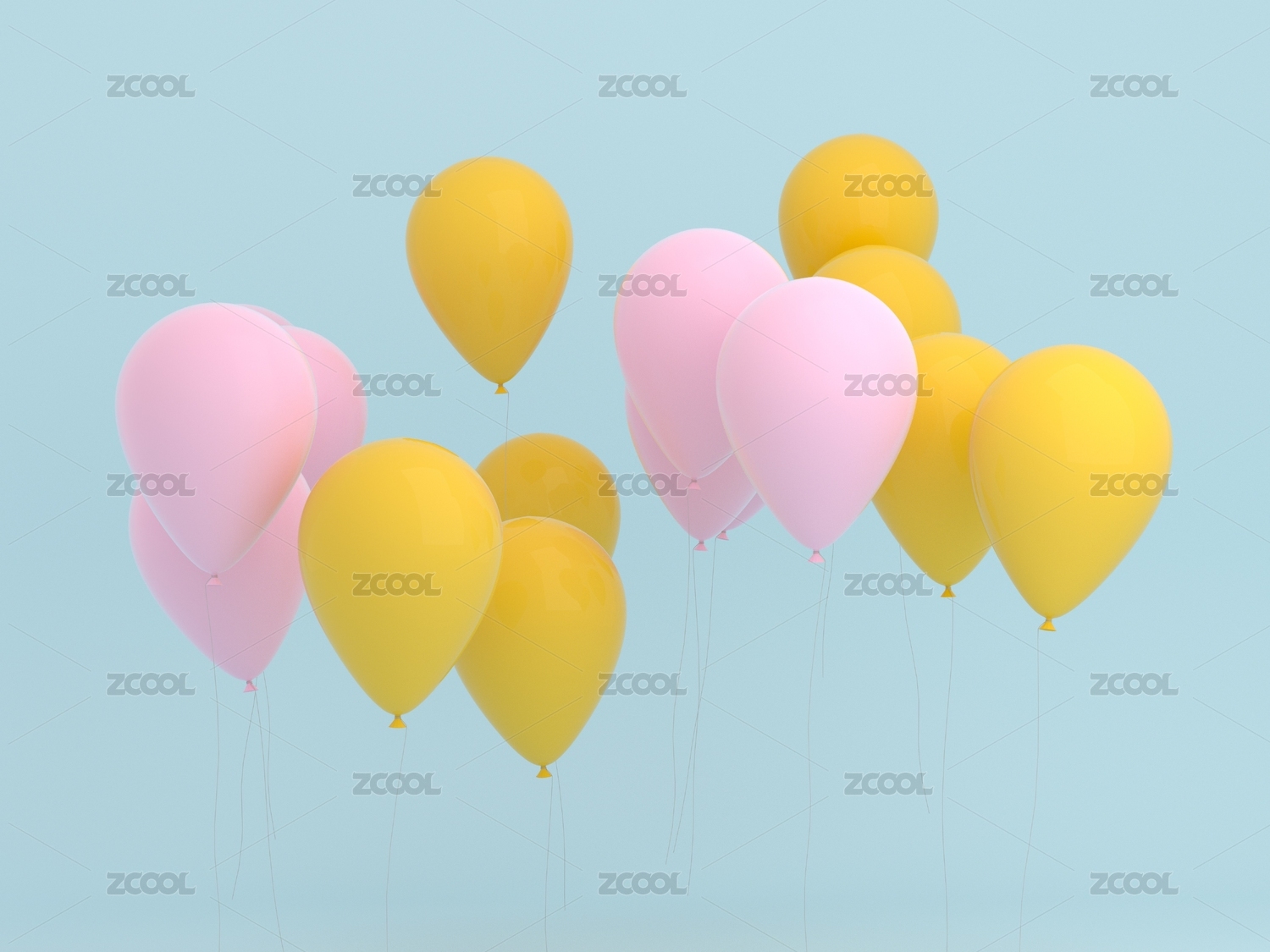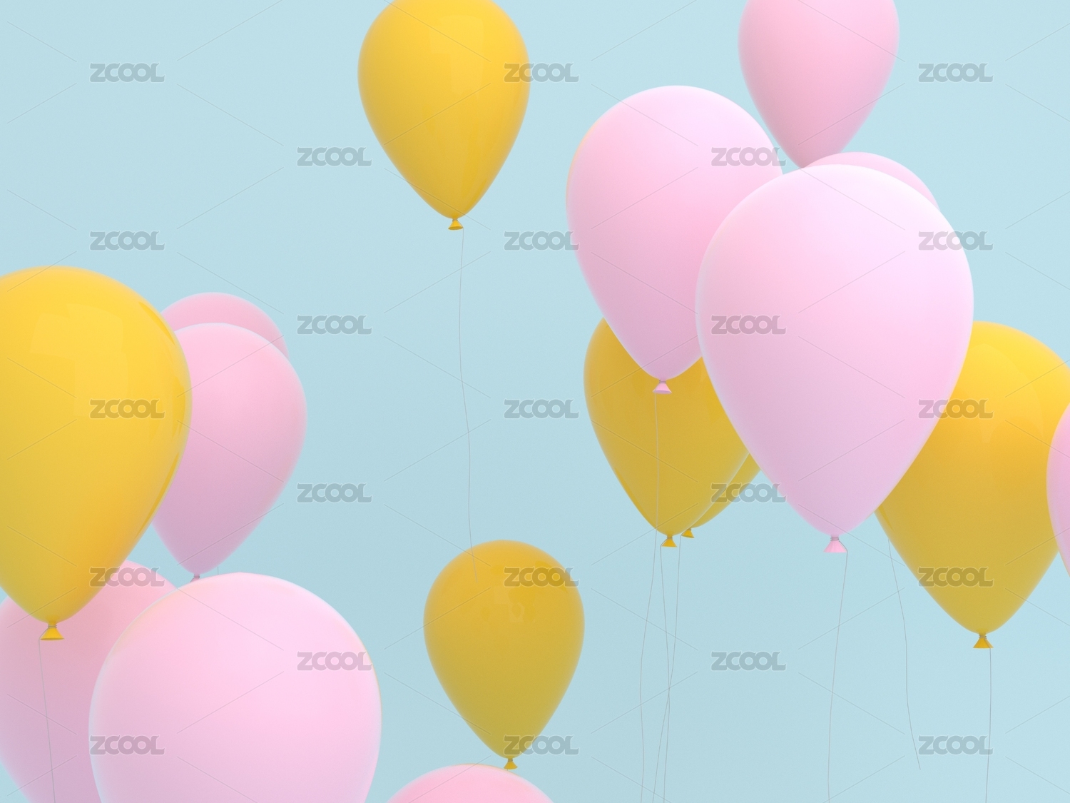 帶有青春色彩的粉色與黃色氣球漂浮在空中