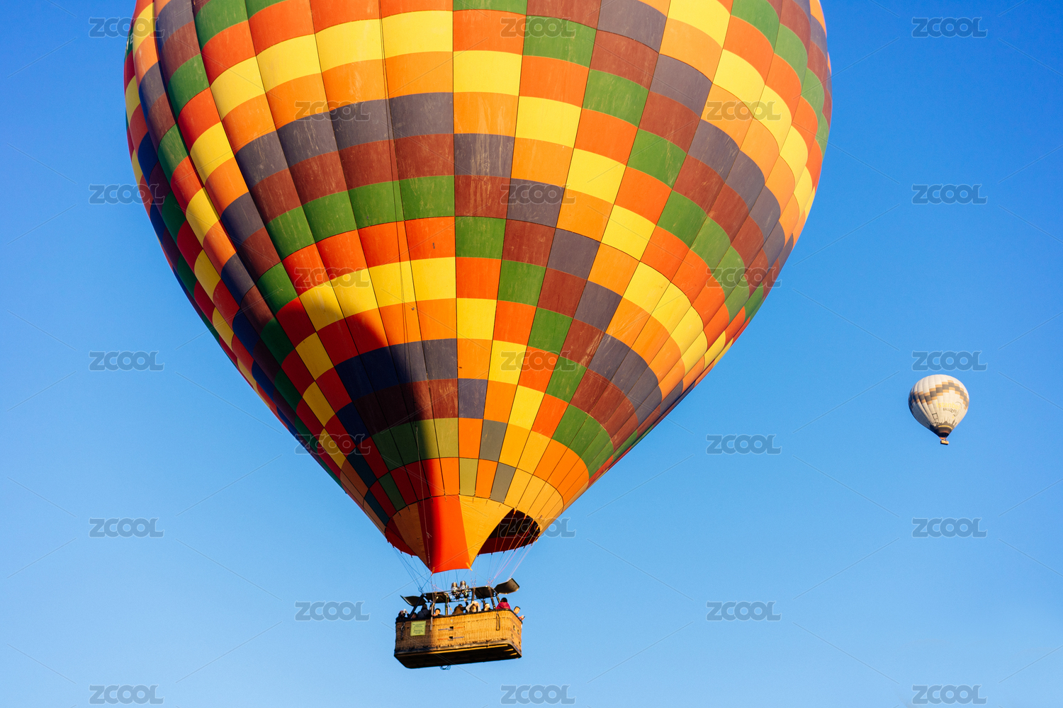 緩緩升空的天空中的熱氣球特寫