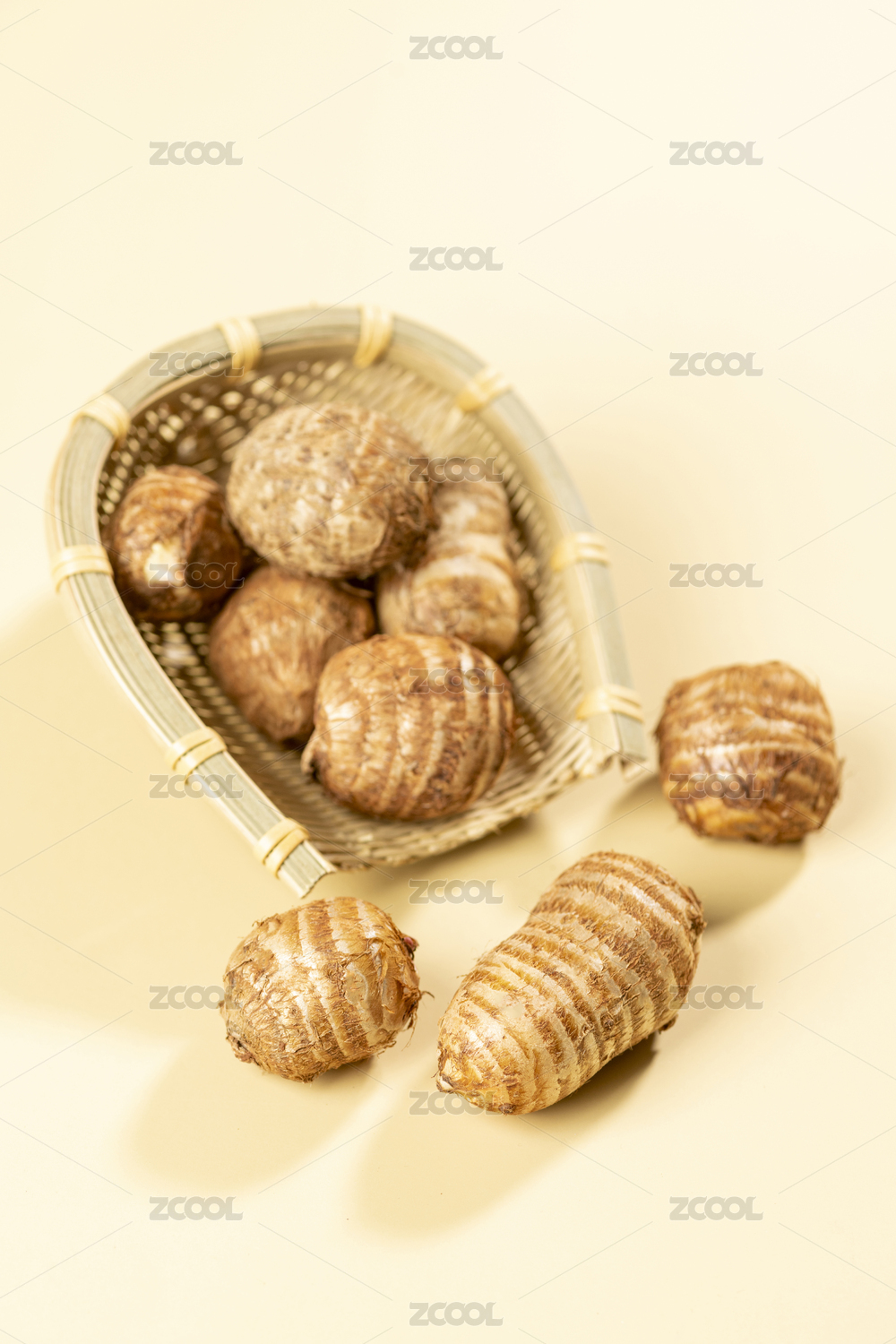 保健營養(yǎng)品芋頭特寫黃色背景莫蘭迪色系