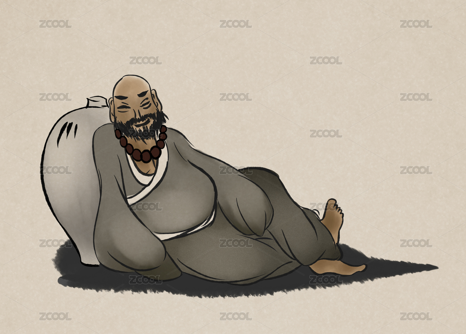 水墨風和尚大師人物風景插畫
