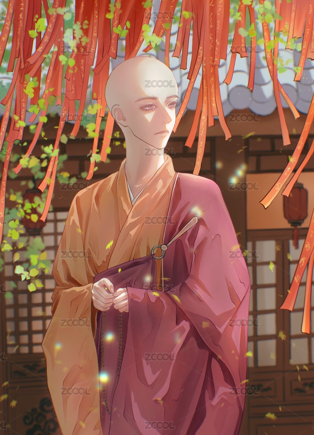 祈福紅繩樹下的和尚
