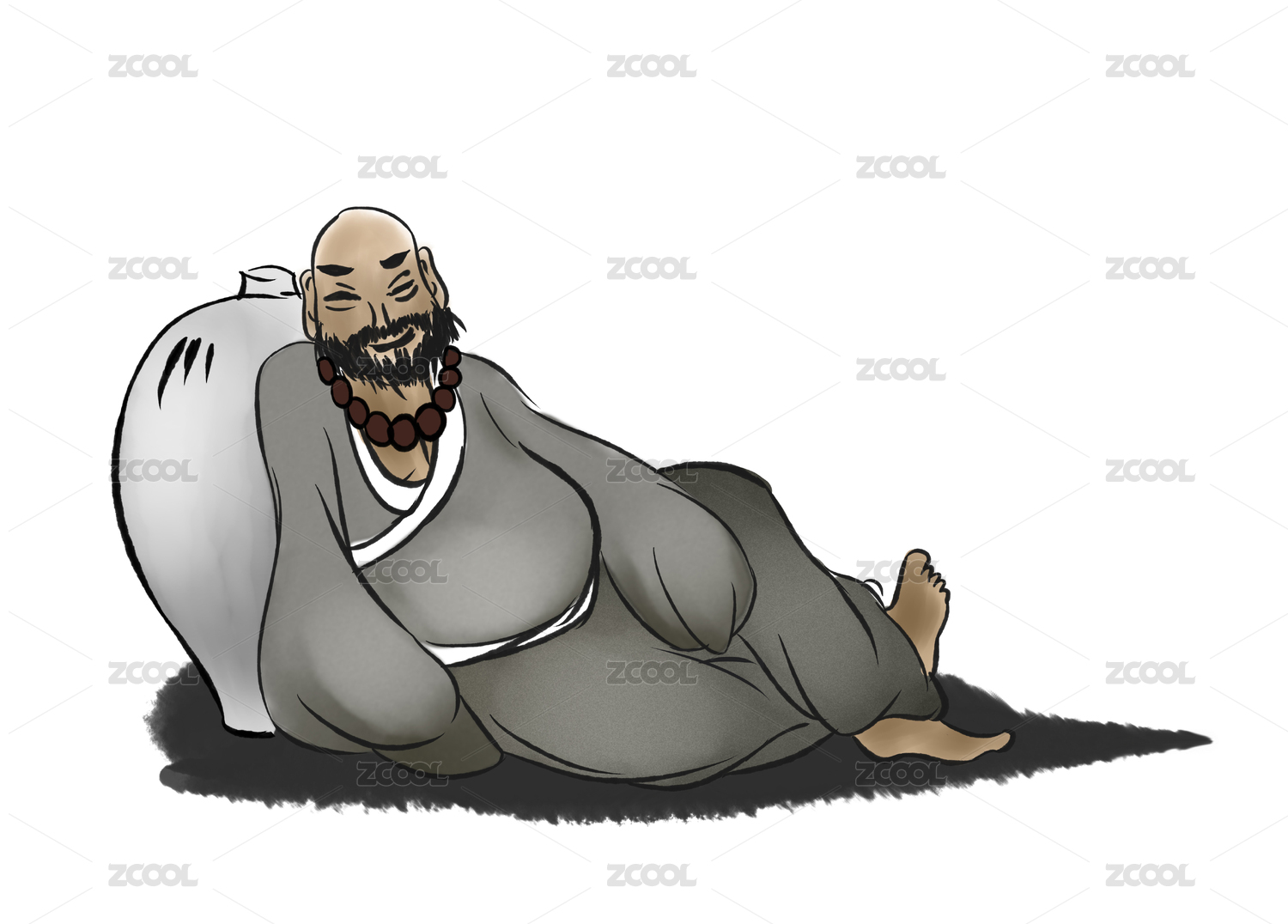 拿著蔥的胖和尚人物卡通插畫