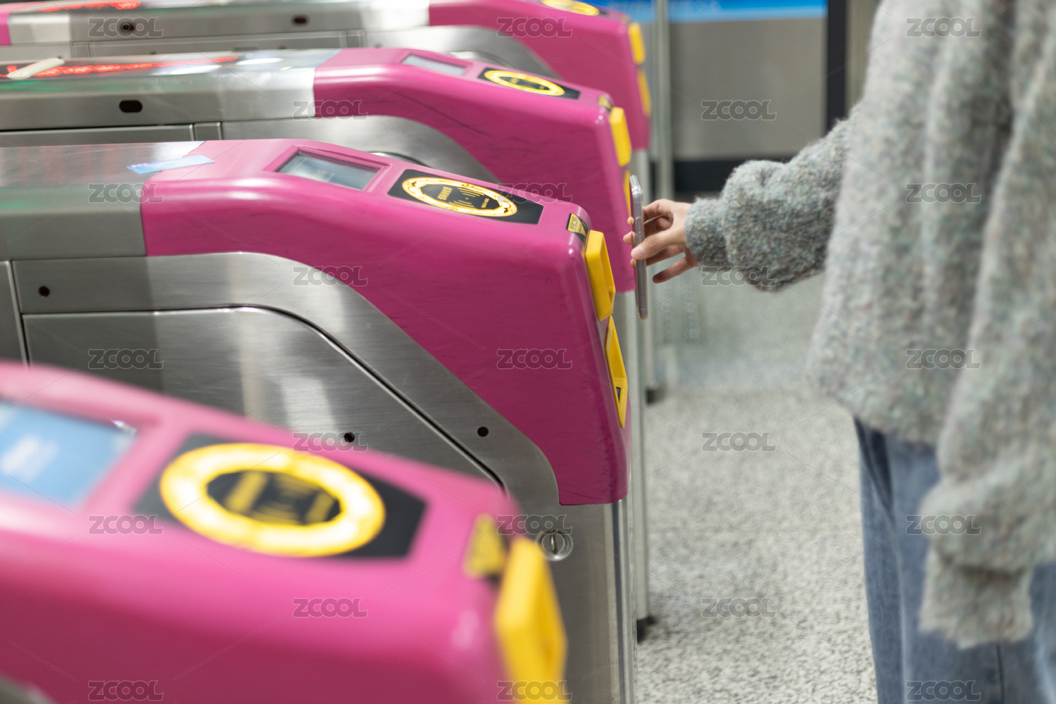 女孩用智能手機(jī)掃碼出地鐵站