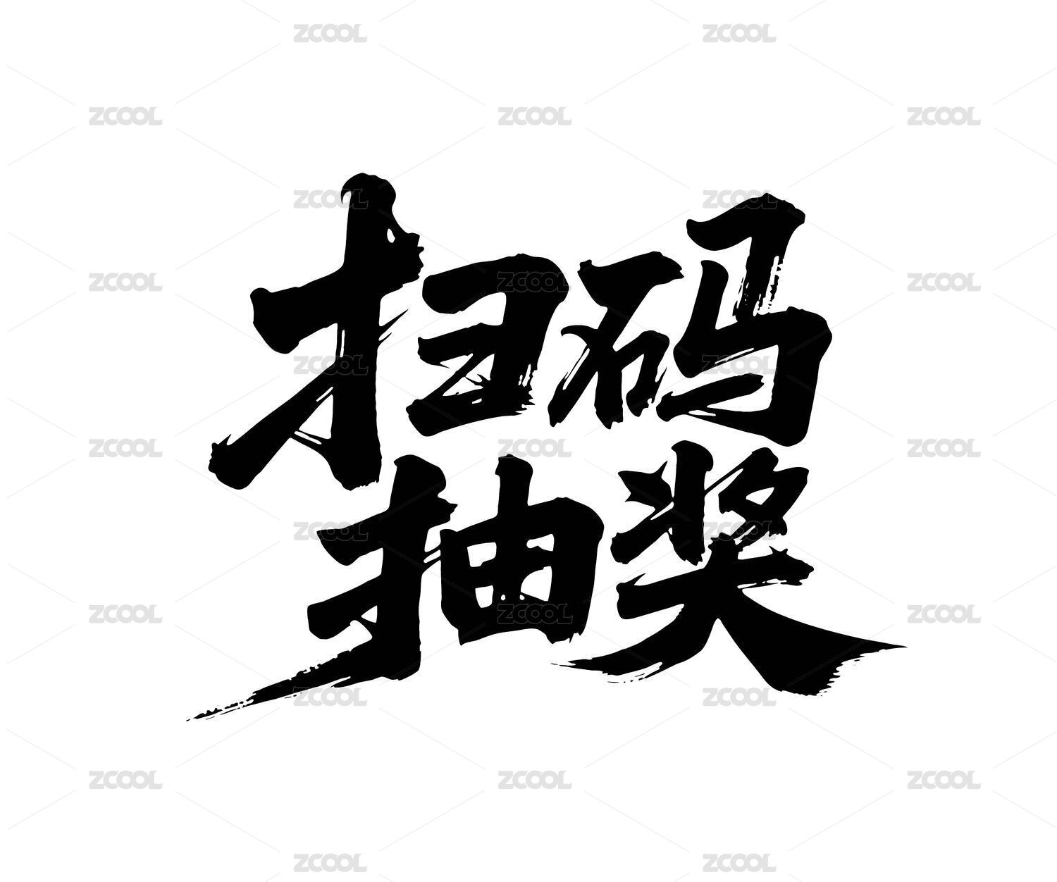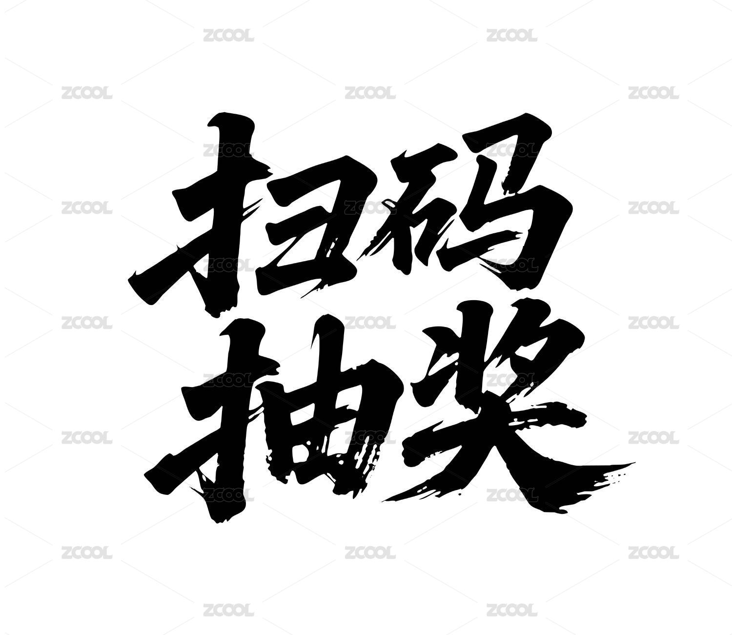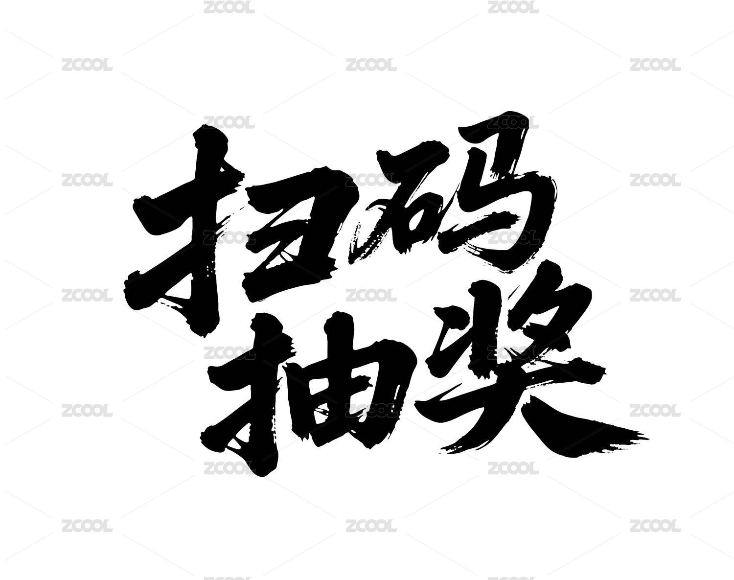 掃碼抽獎矢量書法手寫毛筆字