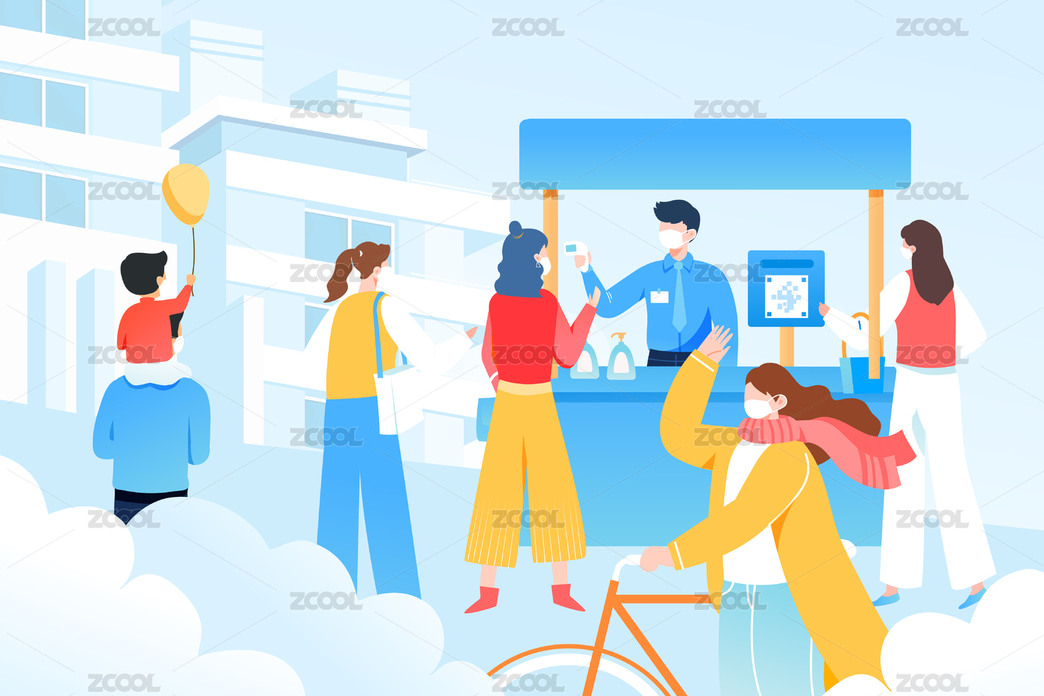 掃碼出行醫(yī)療矢量插畫