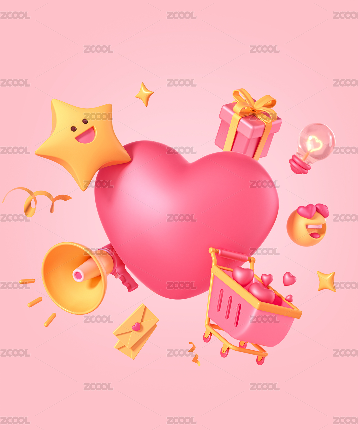 情人節(jié)粉色愛心元素堆電商活動(dòng)3D頭圖場(chǎng)景