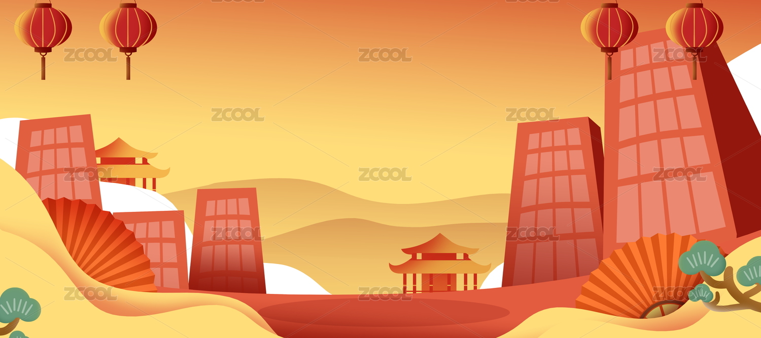 卡通手繪新年紅色喜慶詳情頁頭圖插畫背景