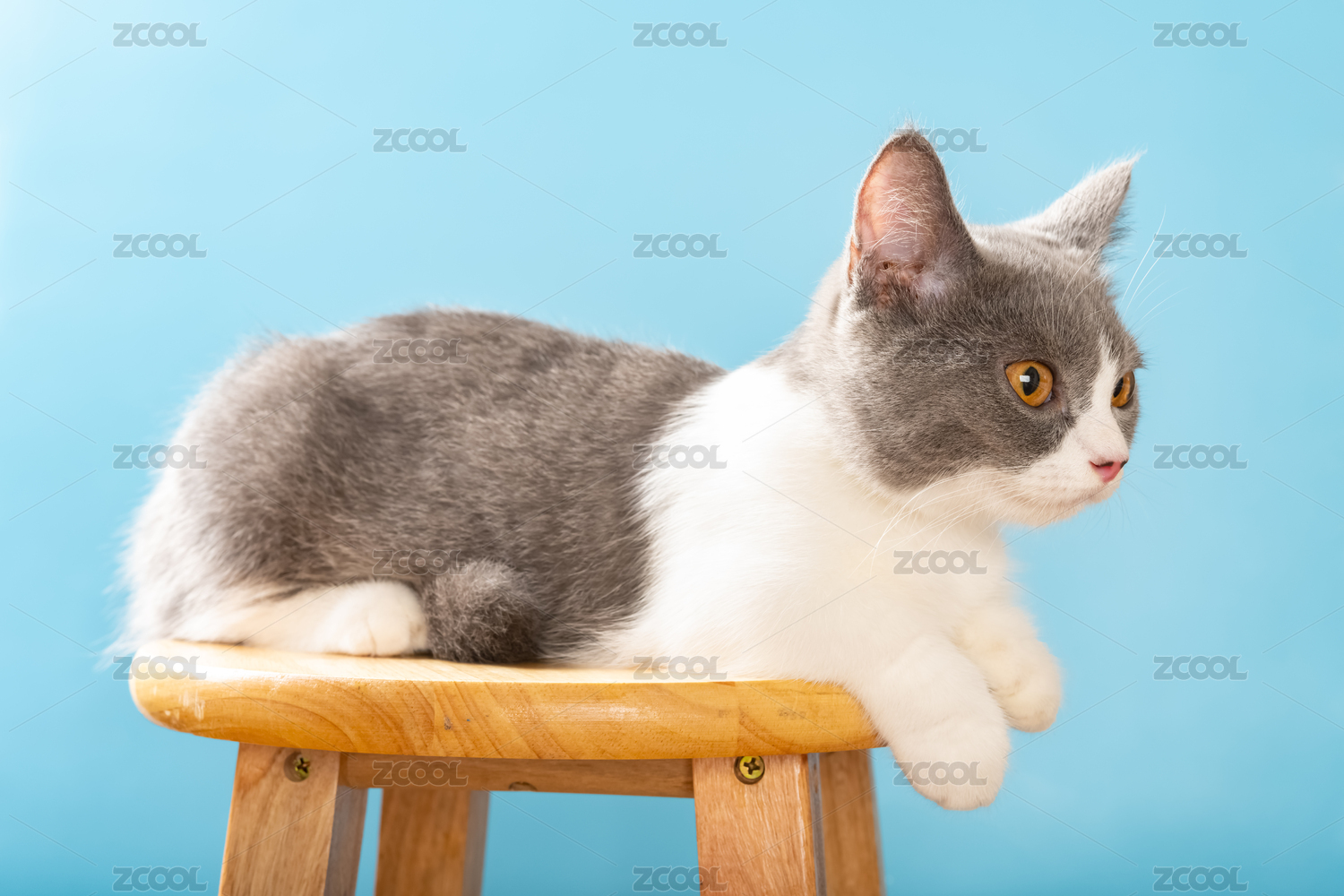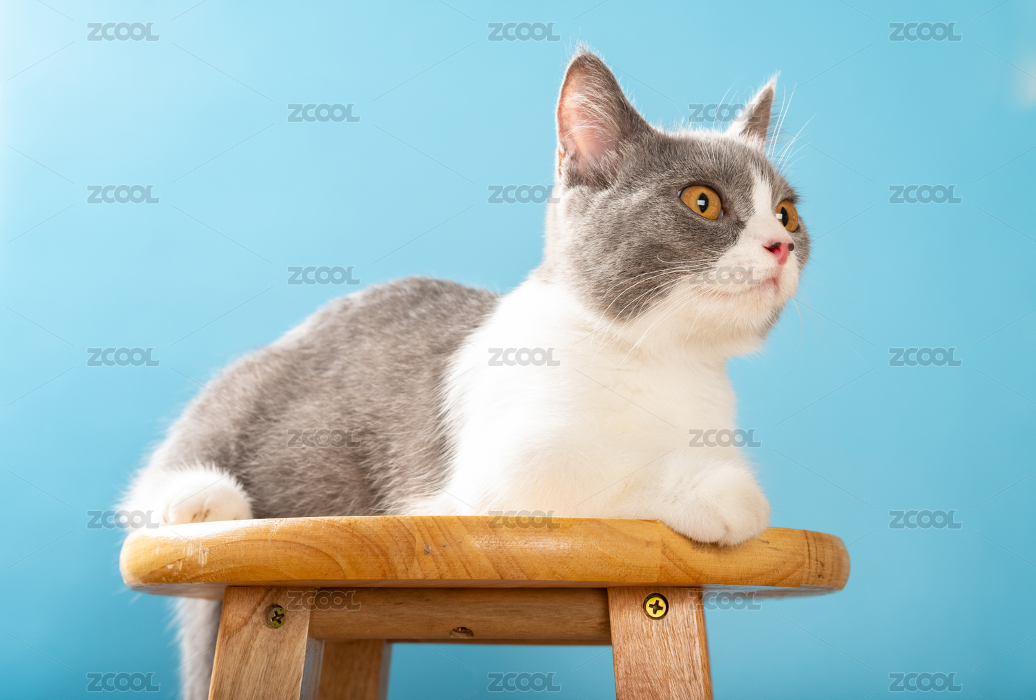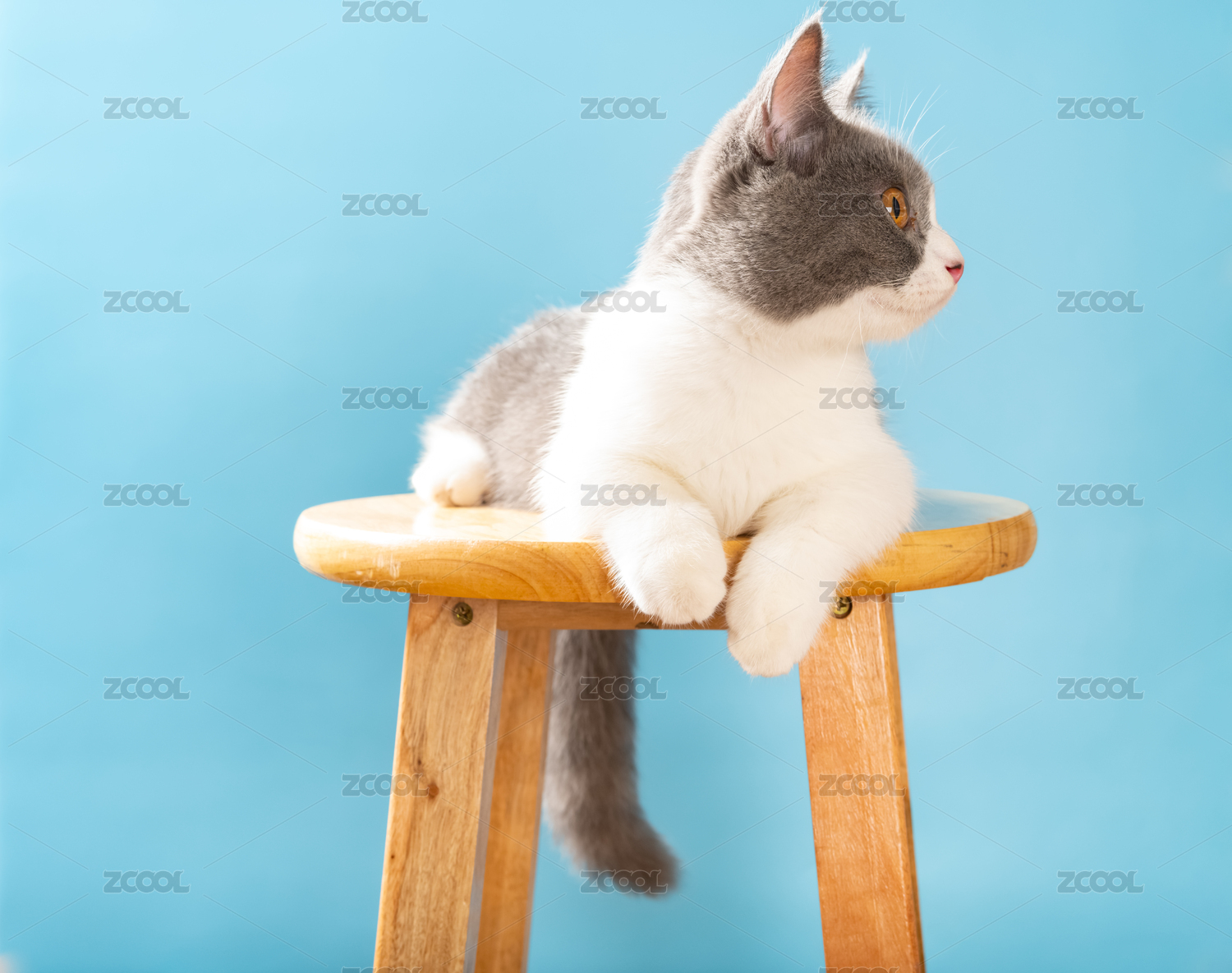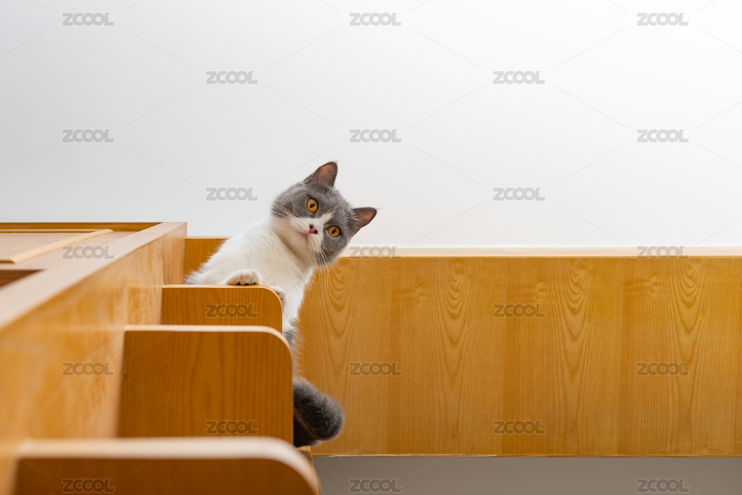 梯子頂部的英短藍(lán)白貓貓