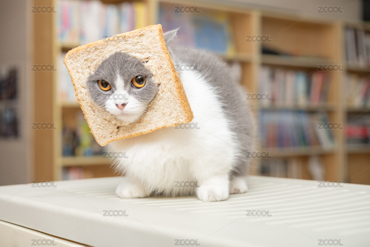 脖子套著面包的英短藍(lán)白貓貓