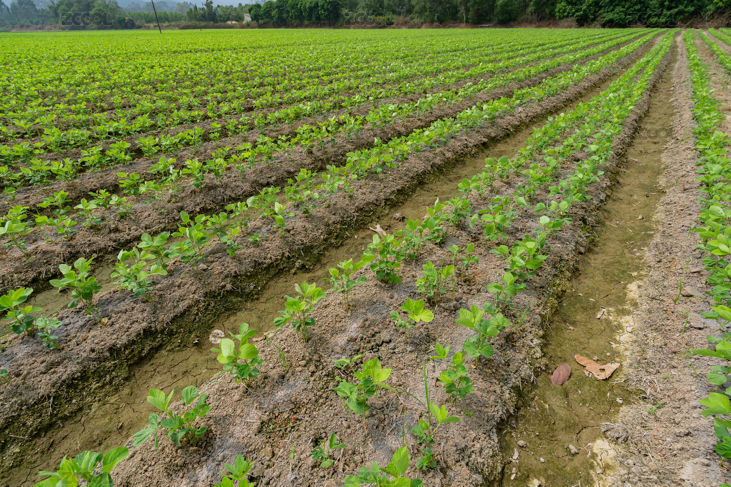 遼闊的壟畦分明的大豆苗期田塊,中國福建漳州