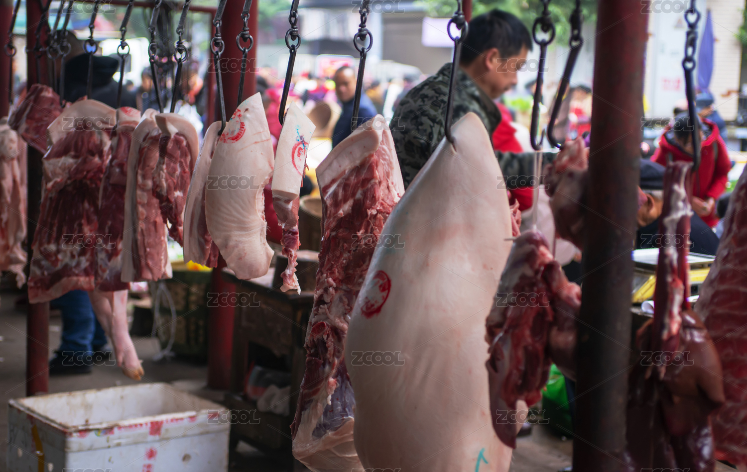 四川省宜賓地區(qū)敘州區(qū)觀音鎮(zhèn)農(nóng)貿(mào)市場的豬肉攤位