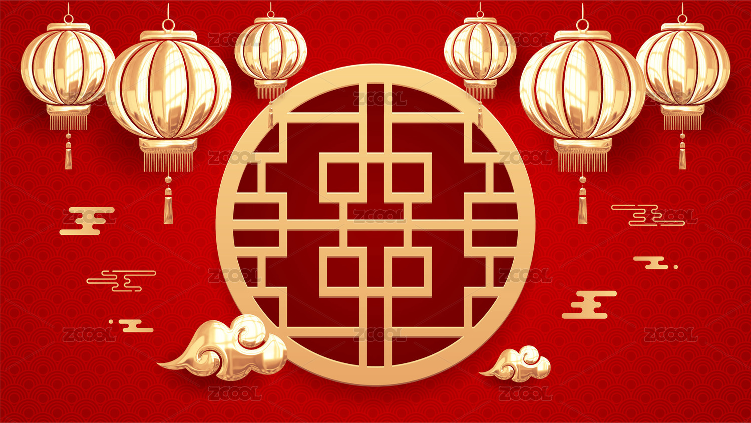 紅色春節(jié)背景設(shè)計金色的蛇和祥云燈籠