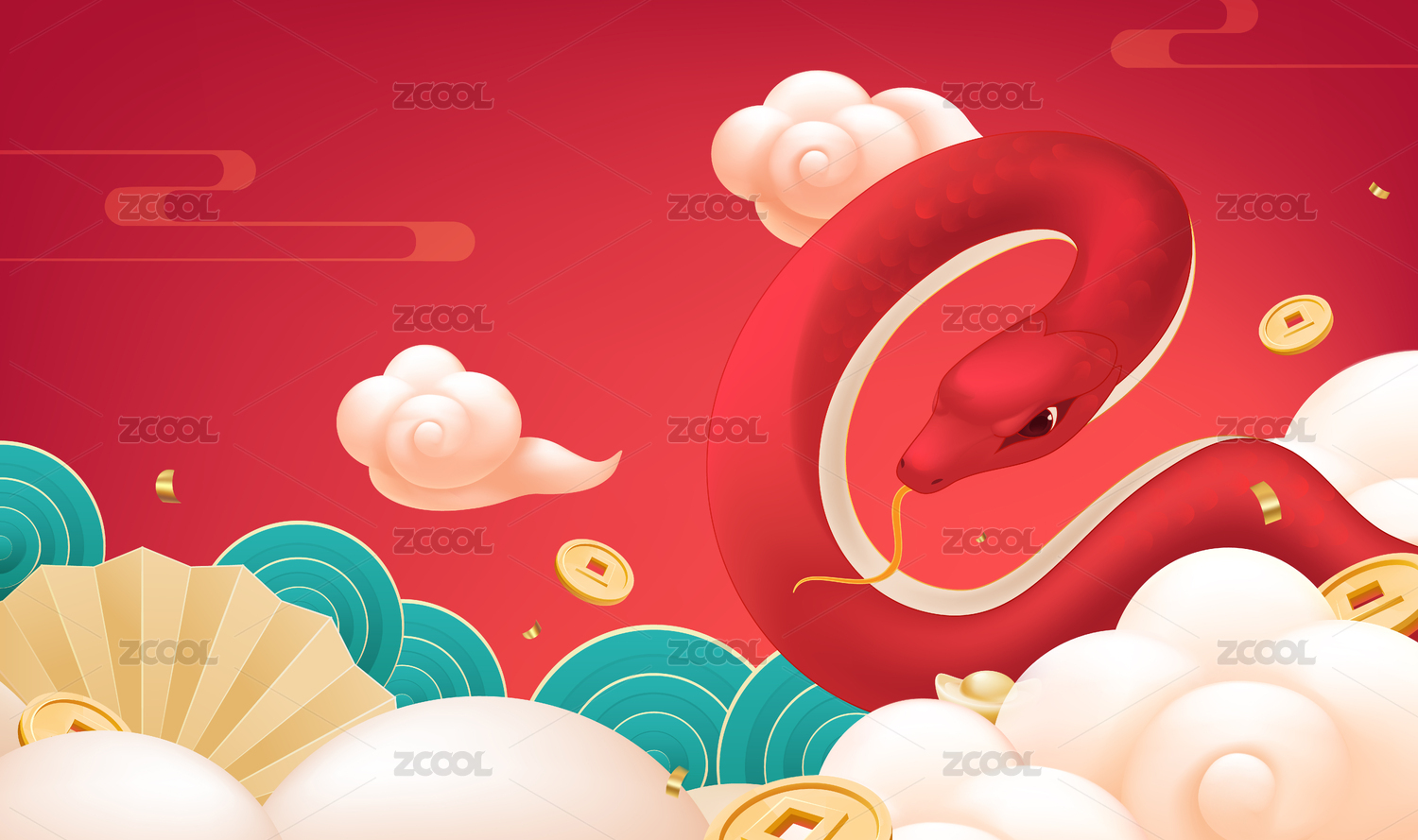 春節(jié)背景設(shè)計紅蛇盤繞在云間