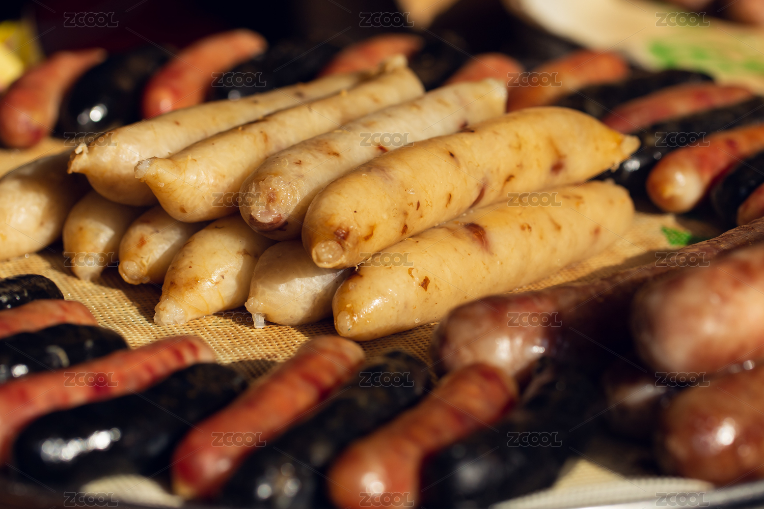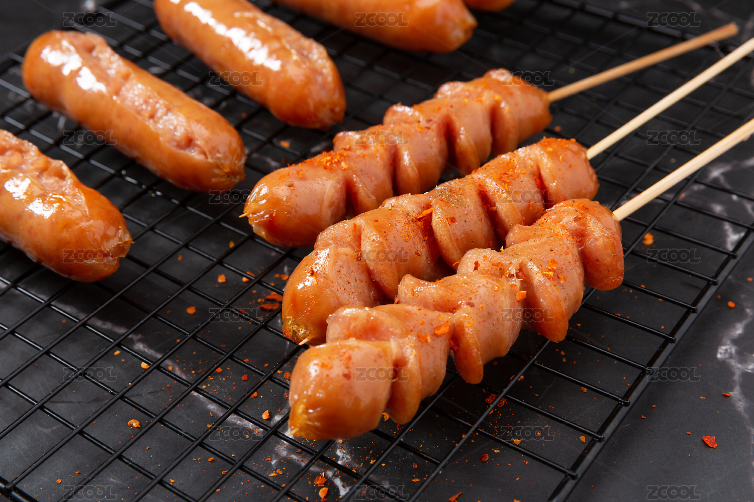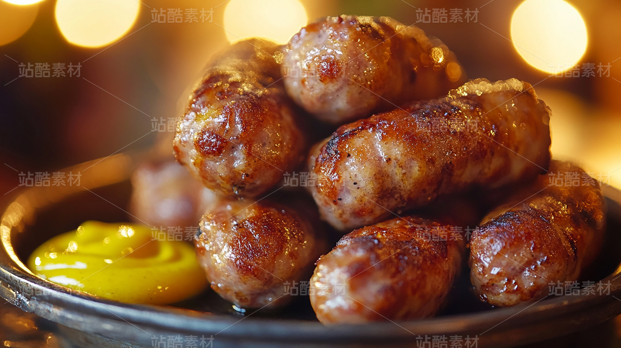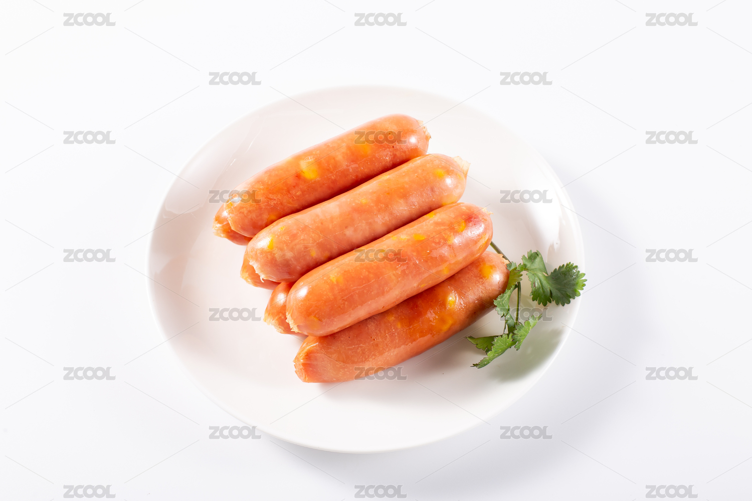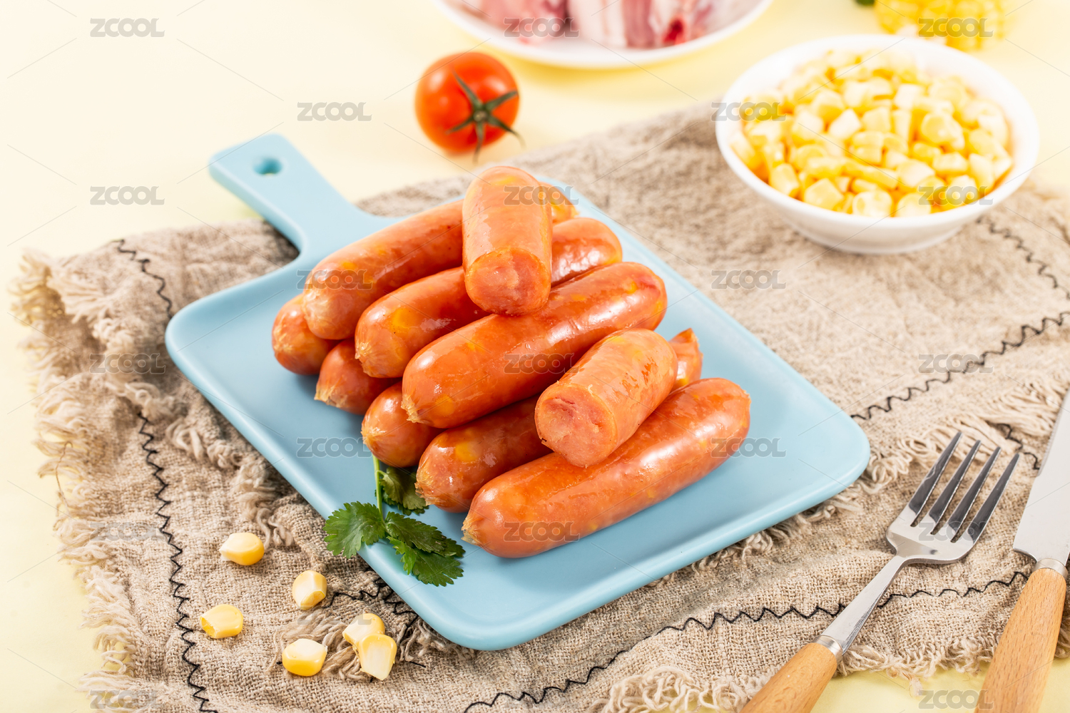 滿滿一盤玉米味烤腸放在黃色背景紙上