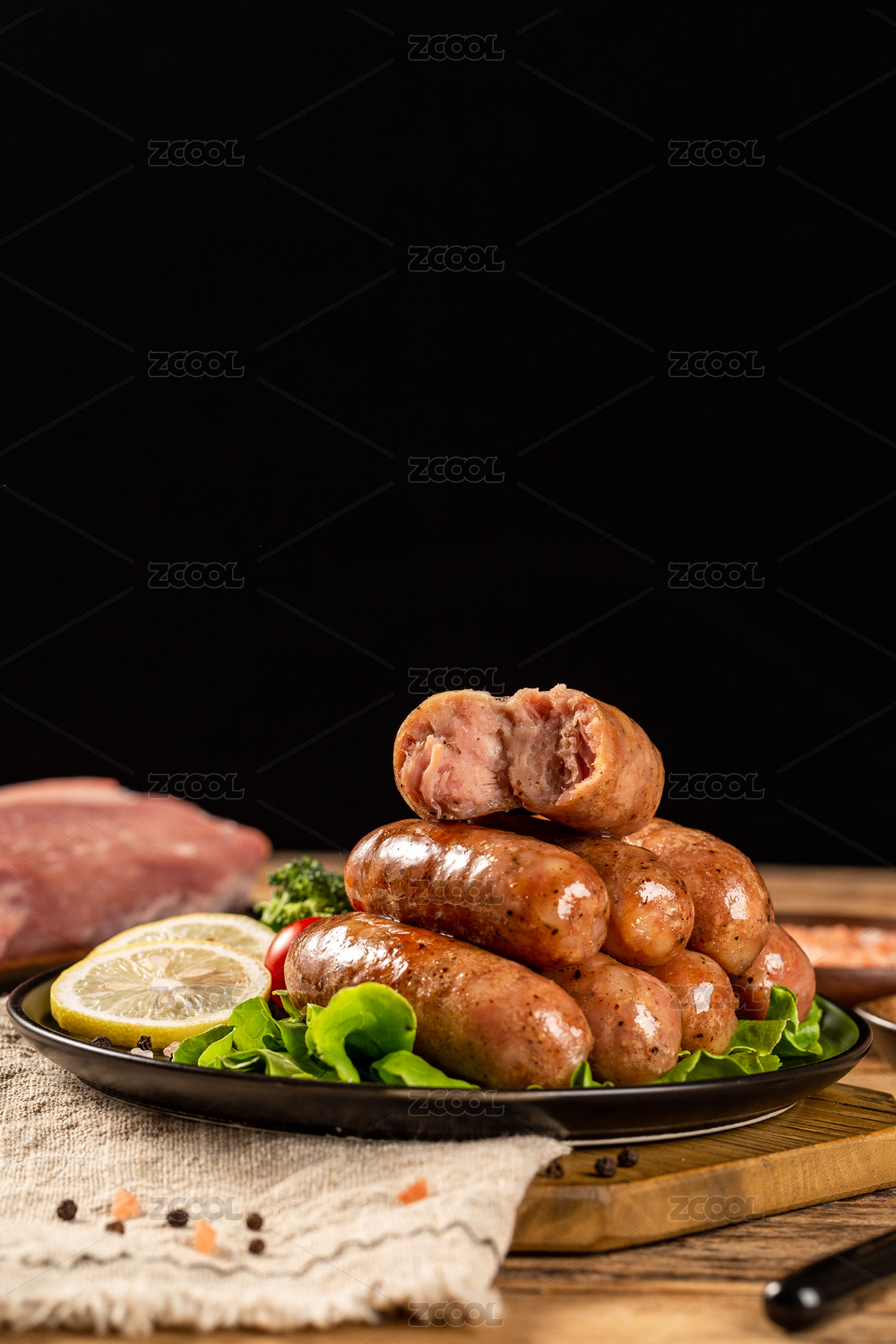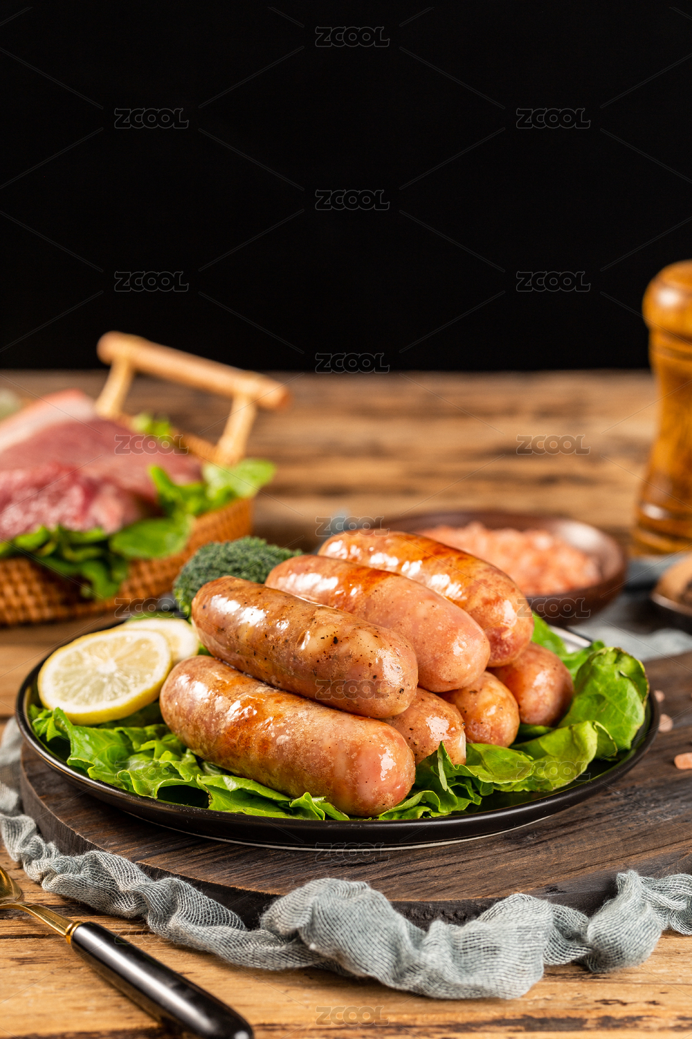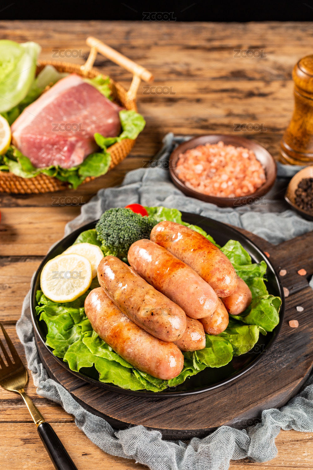 木紋背景上盤子中擺放的純?nèi)饪灸c